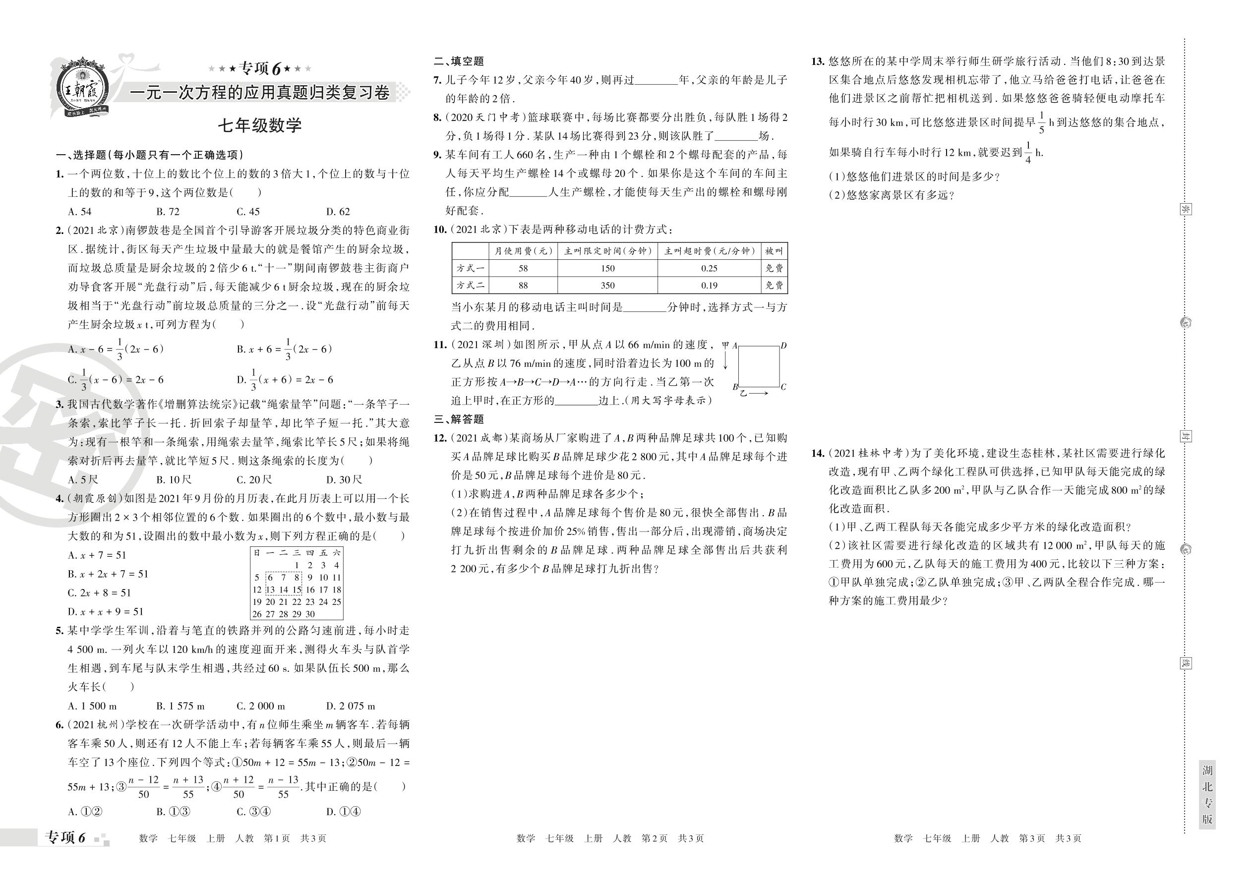 王朝霞期末专项卷——一元一次方程的应用真题归类复习卷七年级上册数学(人教版)_R211224164636194【6】