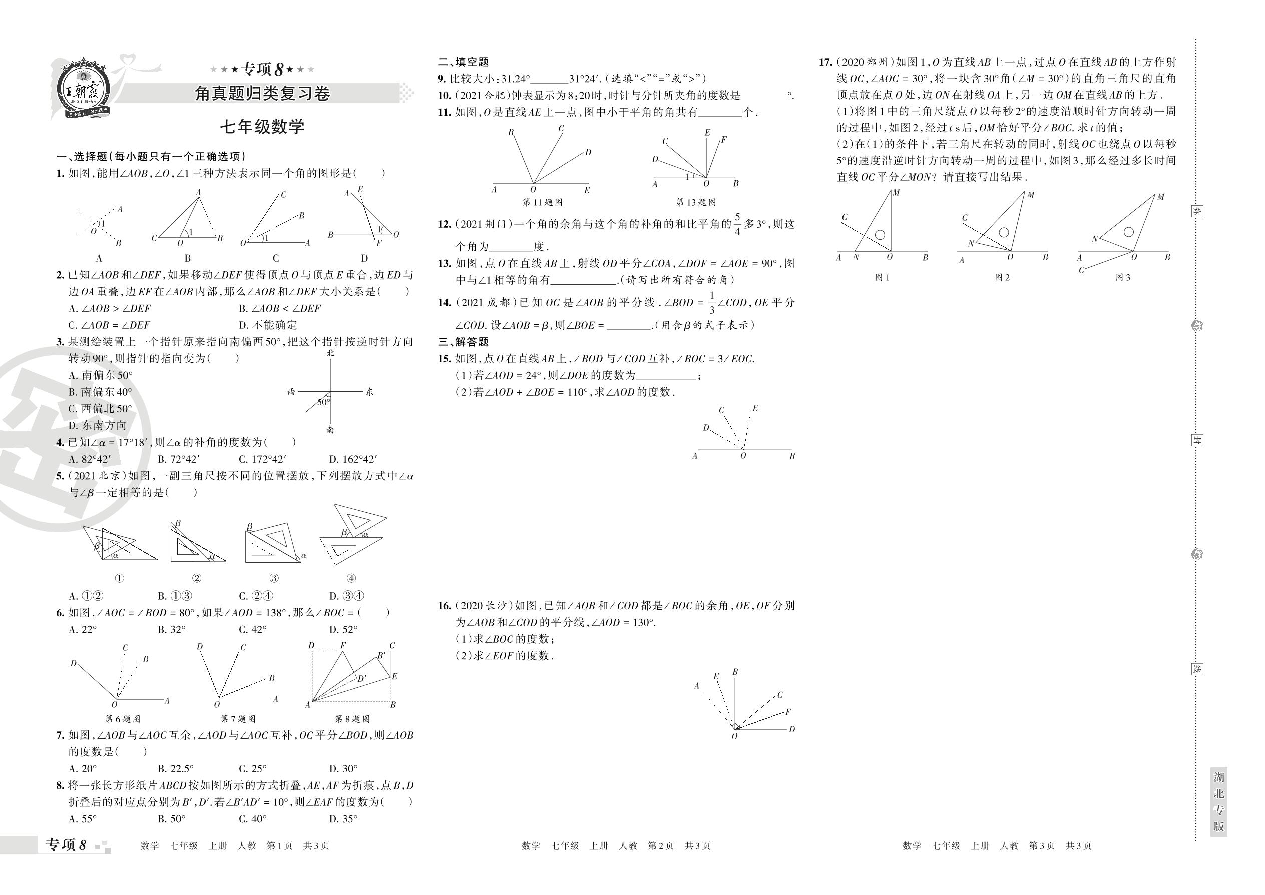 王朝霞期末专项卷——角真题归类复习卷七年级上册数学(人教版)_R211224164637293【8】