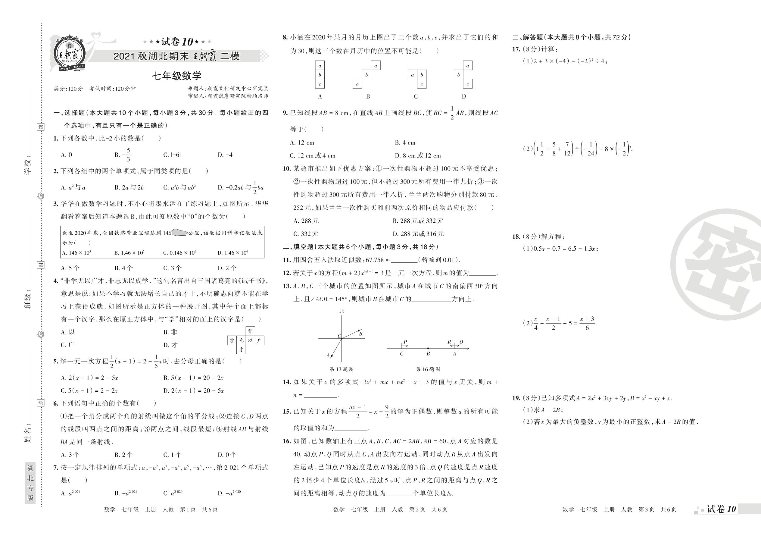 王朝霞期末模拟卷七年级上册数学(人教版)_R211224164637271【10】