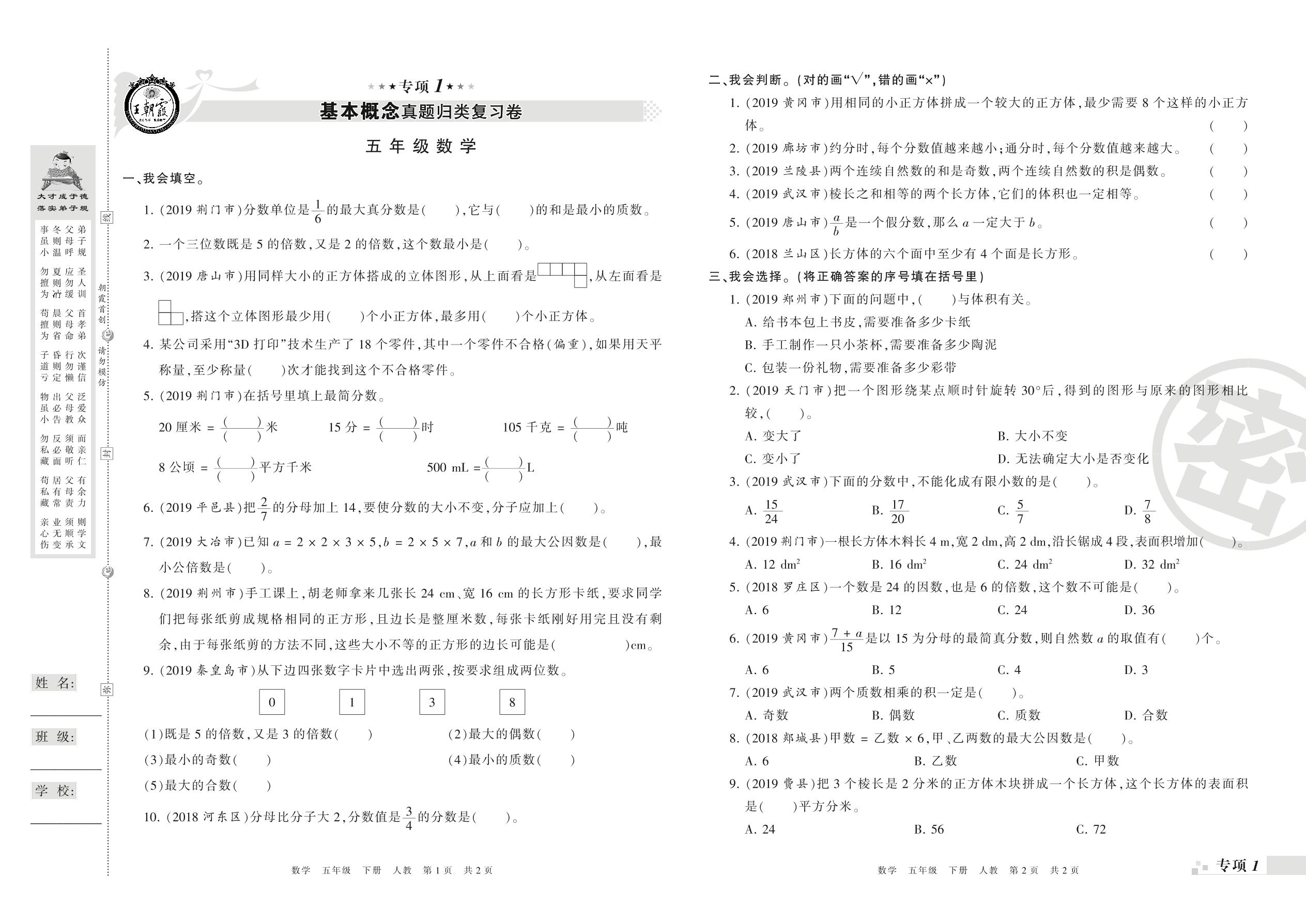 王朝霞期末专项卷——基本概念、计算真题归类复习卷五年级下册数学(人教版)_R21080593218【0】