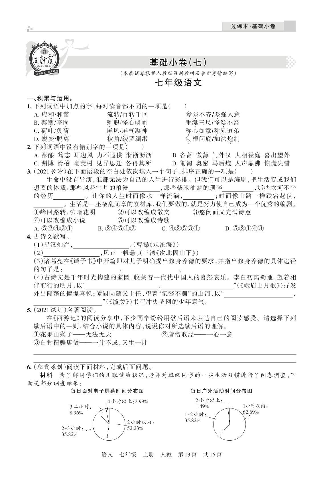 王朝霞期末过课本——基础小卷(七)七年级上册语文(人教版)_R211224170515212【13】