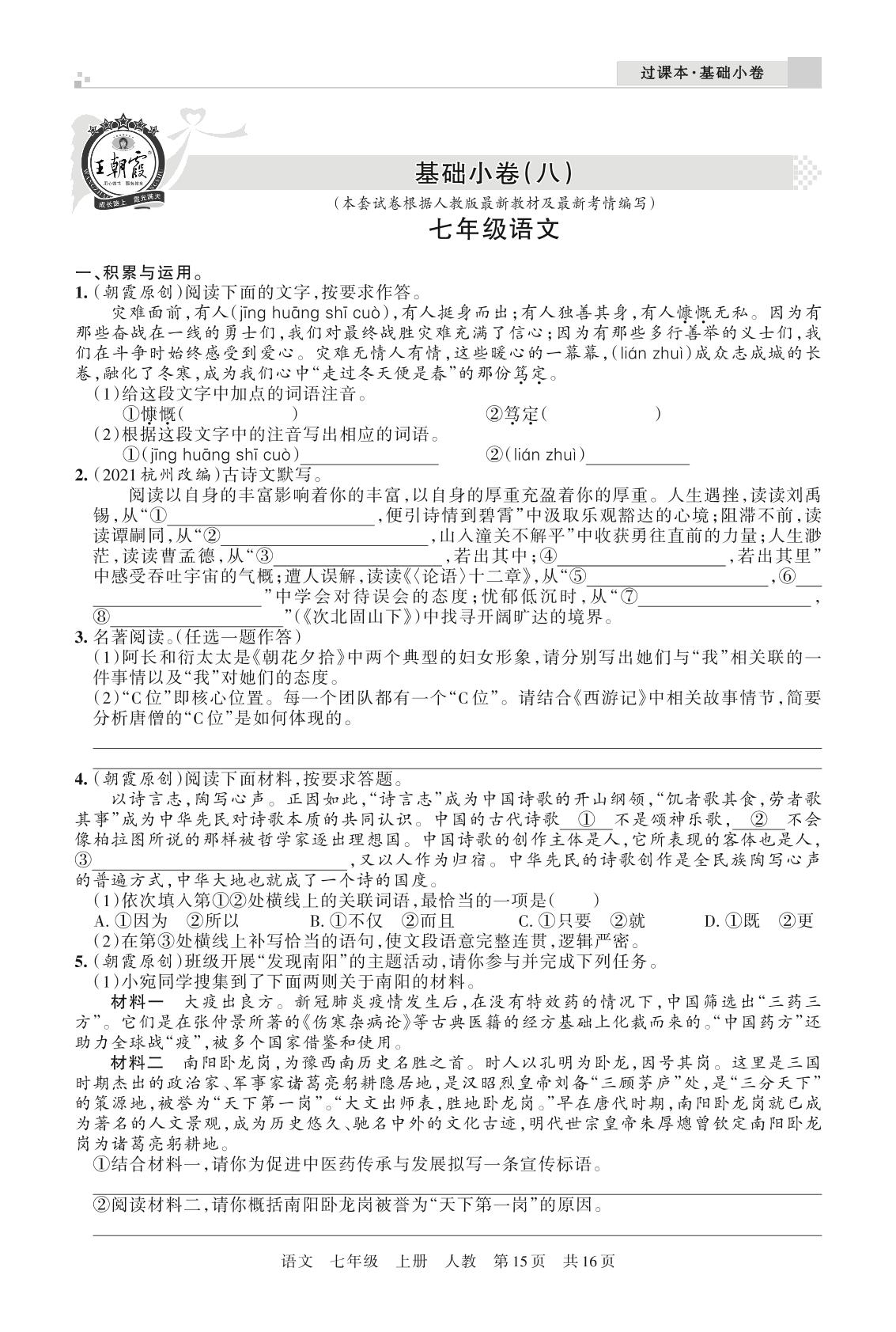 王朝霞期末过课本——基础小卷(八)七年级上册语文(人教版)_R211224170515983【14】