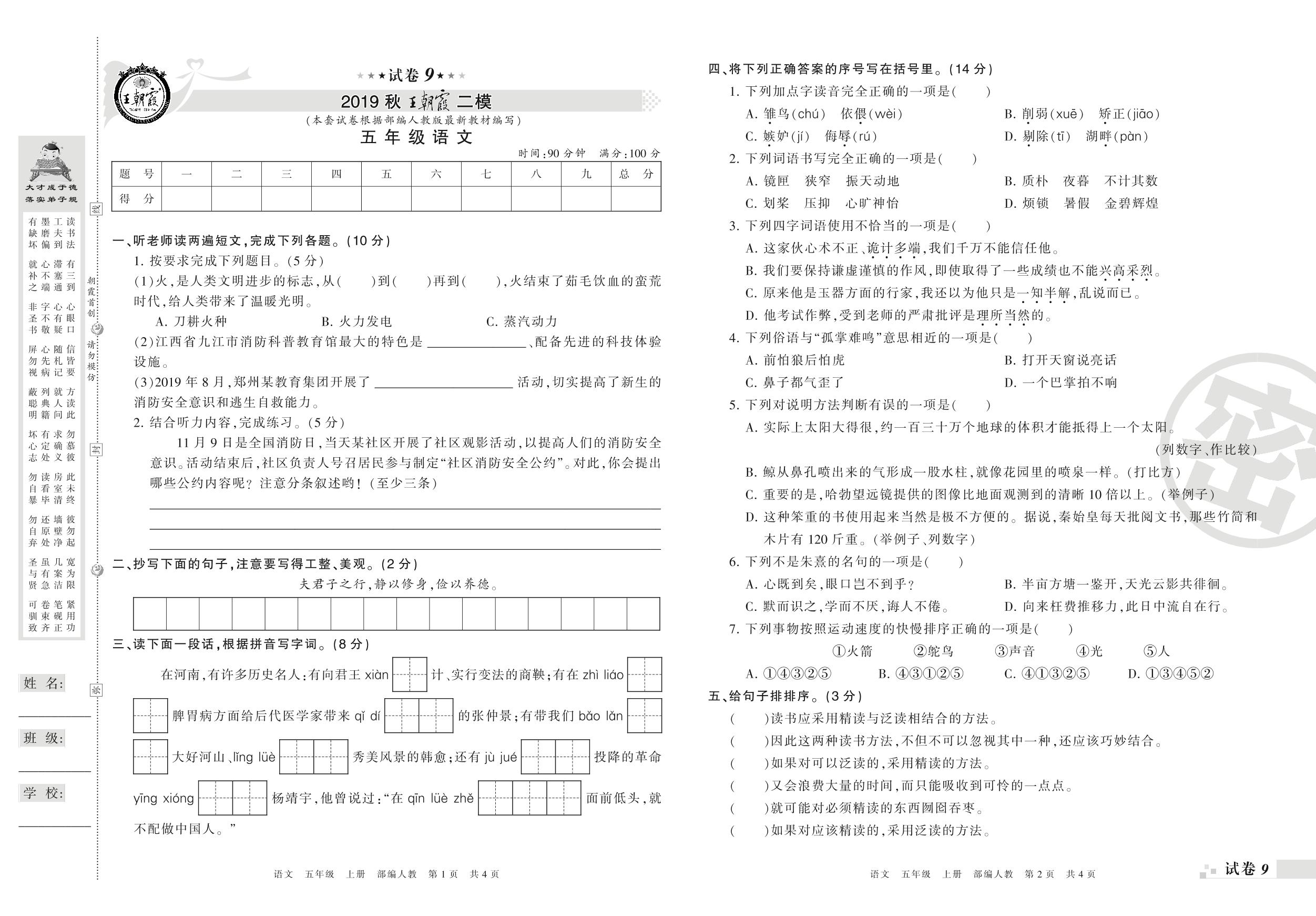 王朝霞期末模拟卷五年级上册语文(人教版)_R210801194516【9】
