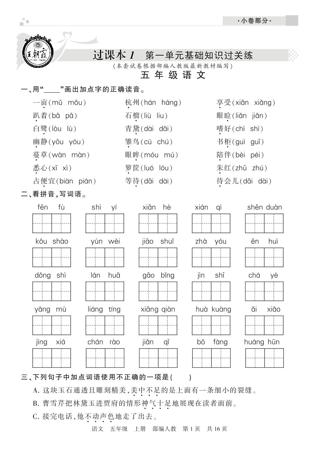 王朝霞期末过课本——基础知识过关练五年级上册语文(人教版)_R210731180505【0】
