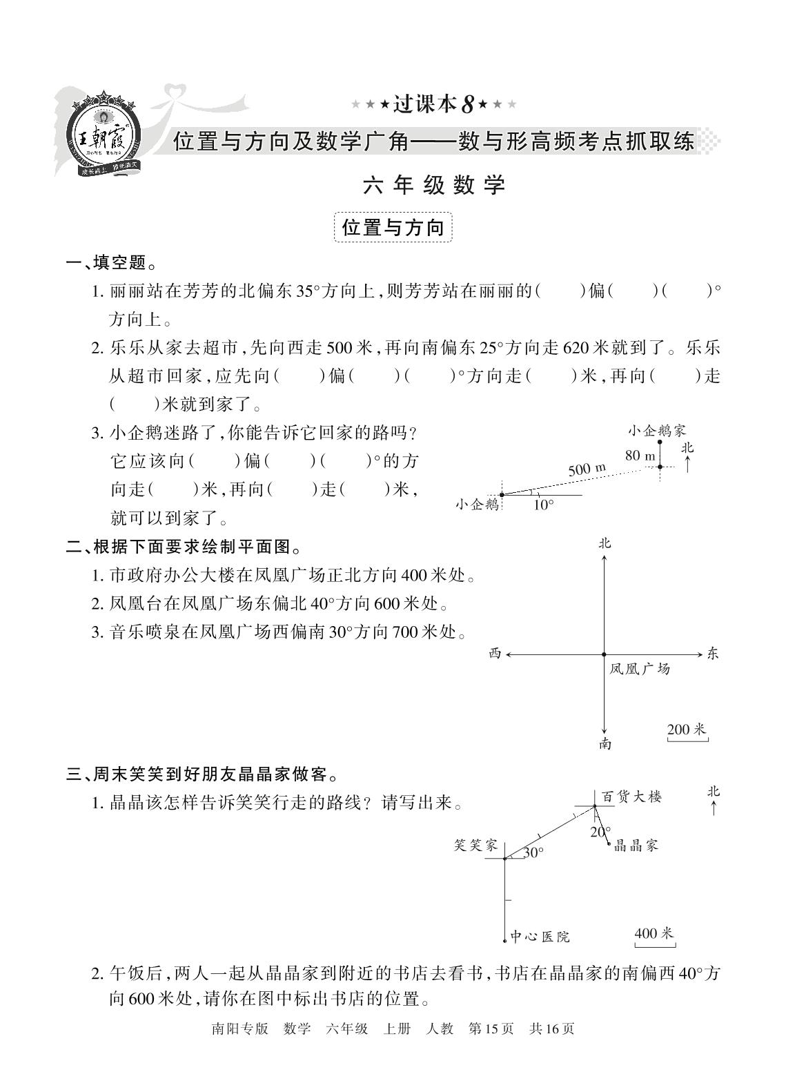王朝霞期末过课本——位置与方向及数学广角:数与形高频考点抓取练六年级上册数学(人教版)_R211225085349618【8】