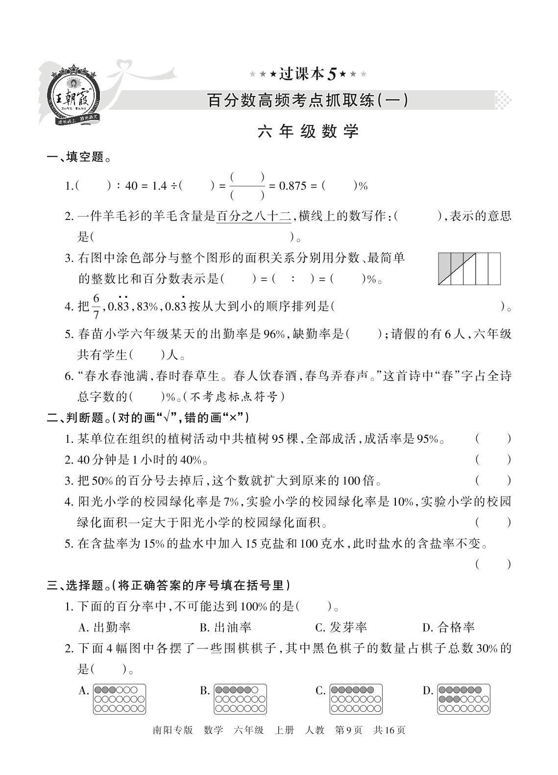 王朝霞期末过课本——百分数高频考点抓取练(一)六年级上册数学(人教版)_R211225085349983【5】