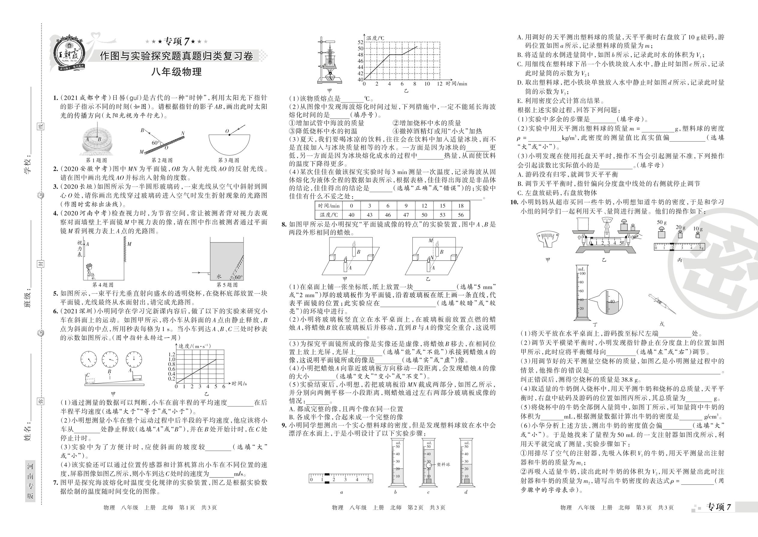 王朝霞期末专项卷——作图与实验探究题真题归类复习卷八年级上册物理(北师版)【7】