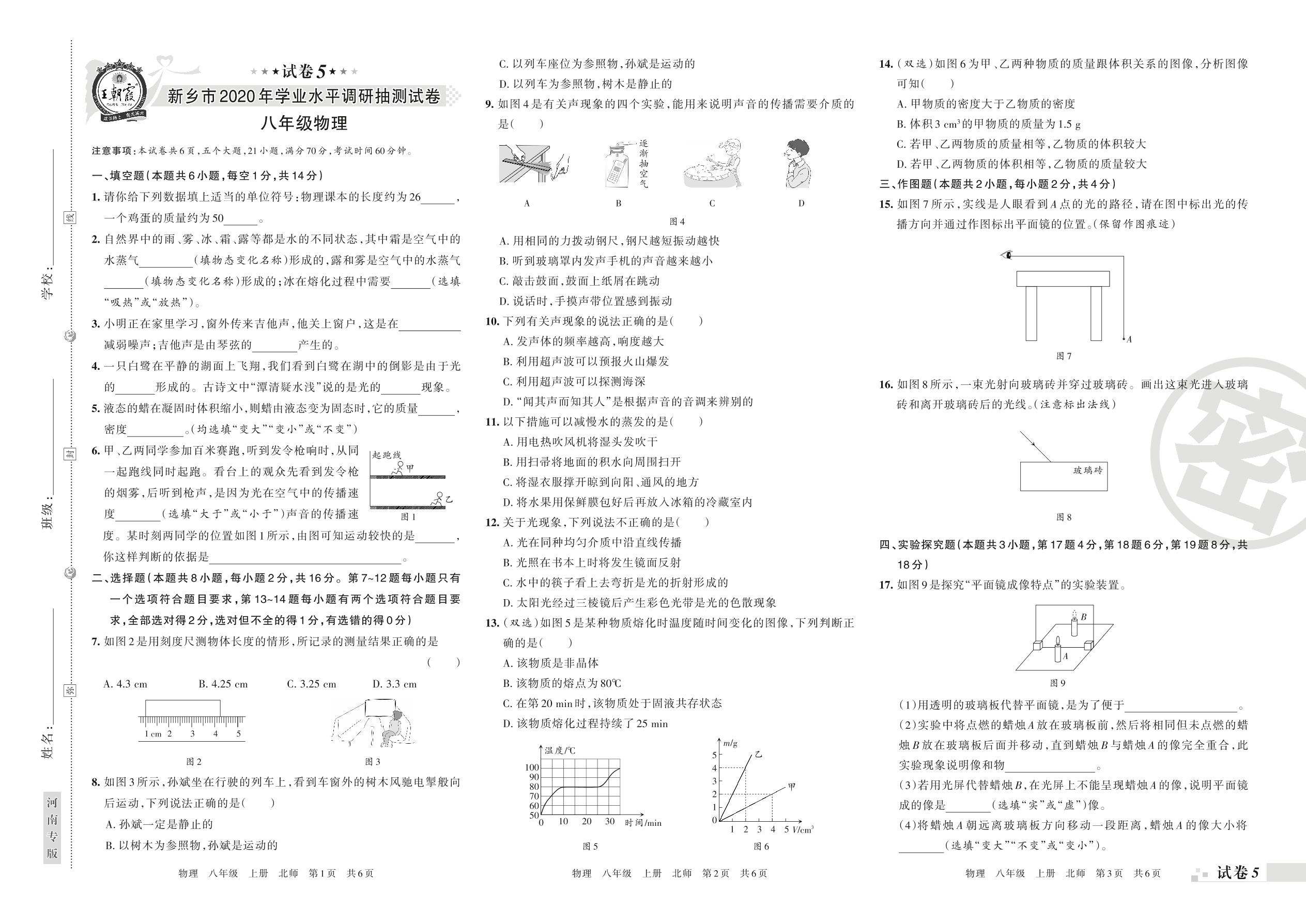 新乡市2020年学业水平调研抽测试卷八年级物理(北师版)【5】