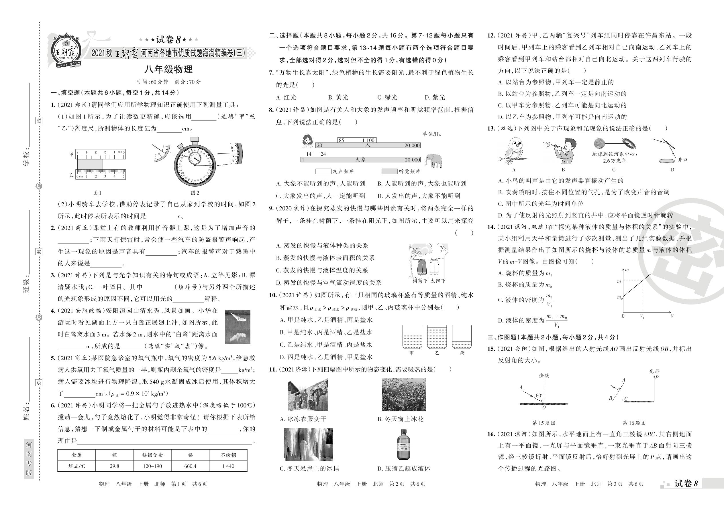 2021秋王朝霞河南省各地市优质试题海淘精编卷(三)八年级物理(北师版)【8】