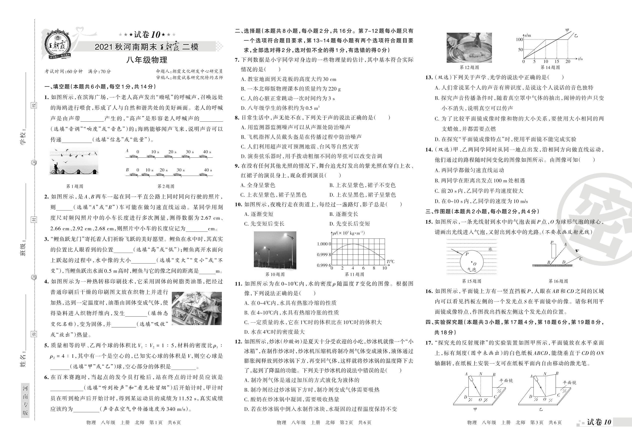 王朝霞期末模拟卷八年级上册物理(北师版)【10】