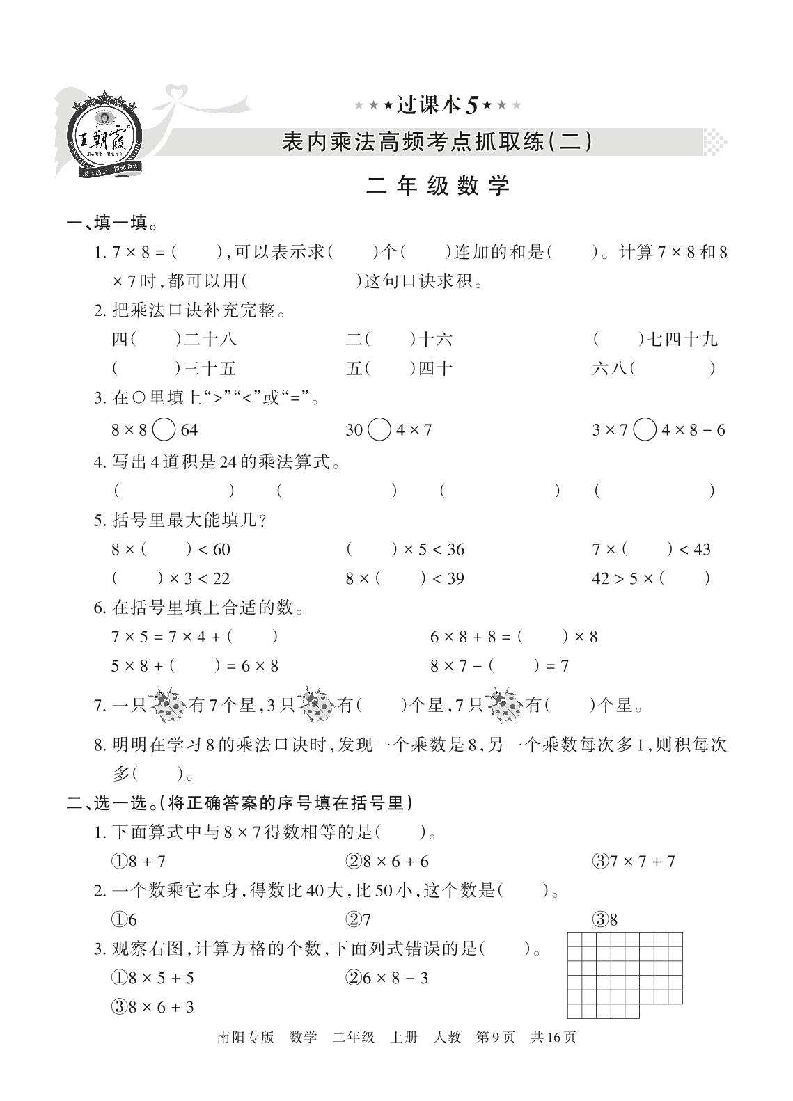 王朝霞期末过课本——表内乘法高频考点抓取练(二)二年级上册数学(人教版)_R211225091203798【5】