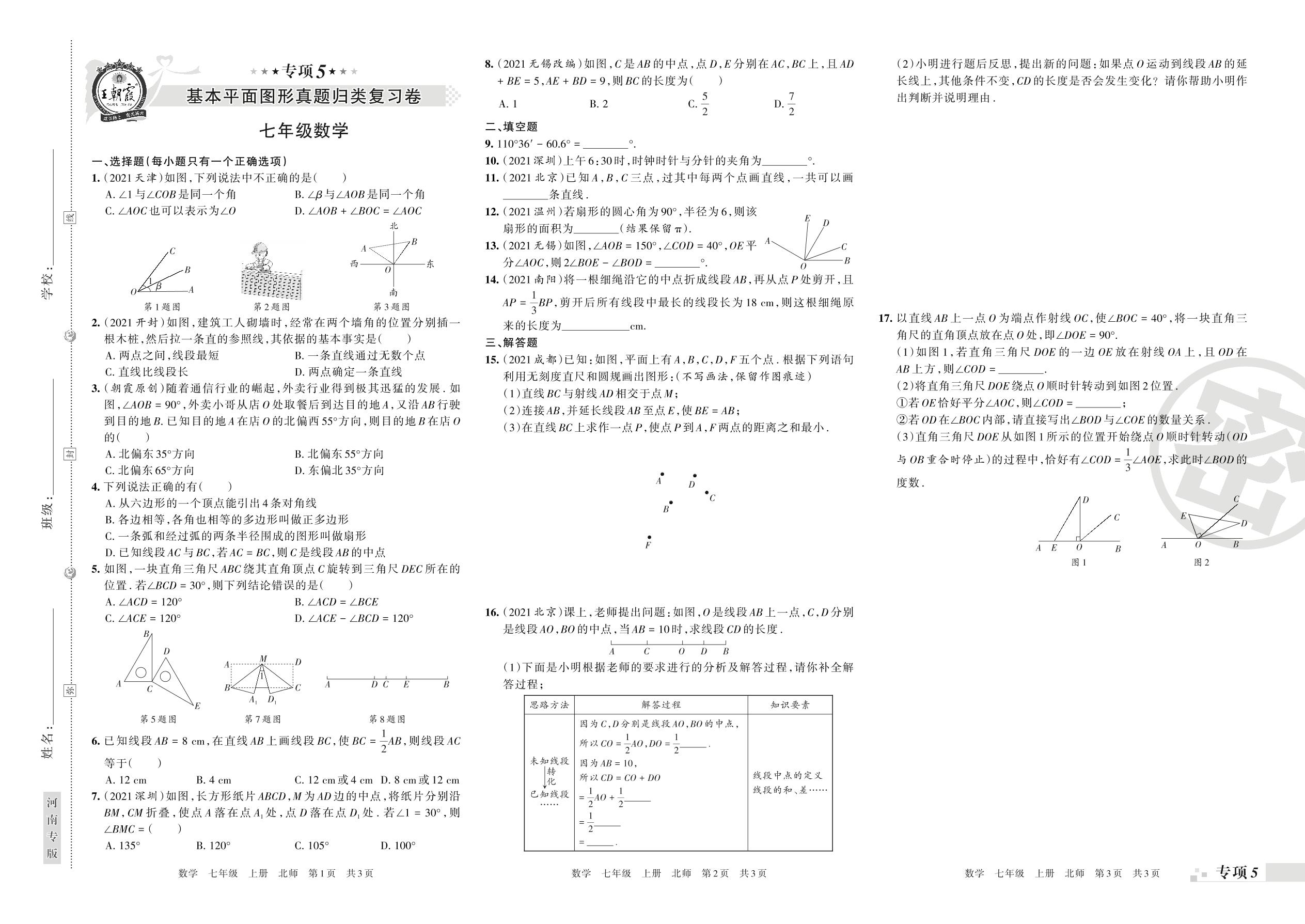 王朝霞期末专项卷——基本平面图形真题归类复习卷七年级上册数学(北师版)_R211225091344372【5】