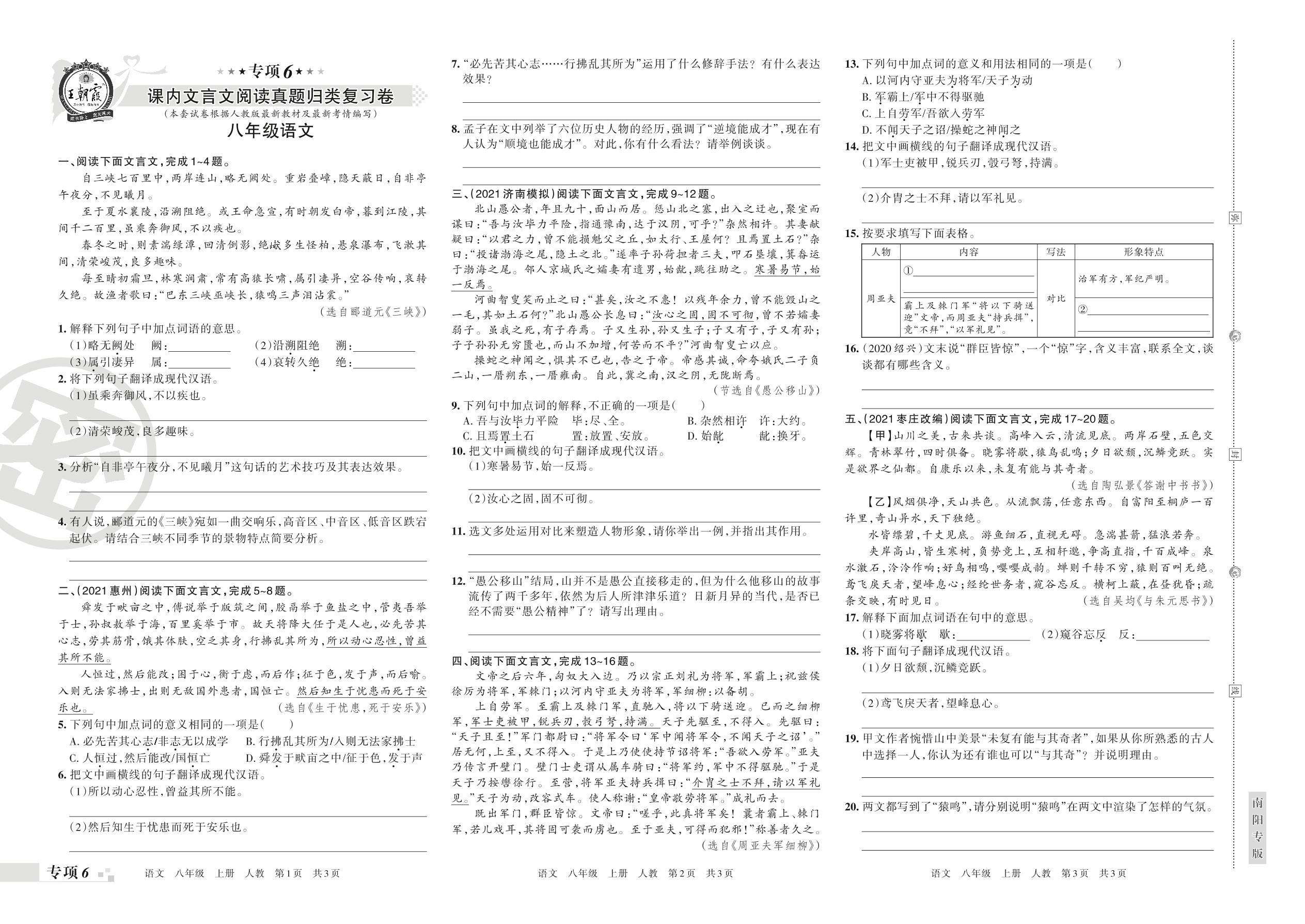 王朝霞期末专项卷——课内文言文阅读真题归类复习卷八年级上册语文(人教版)_R211225092222088【6】