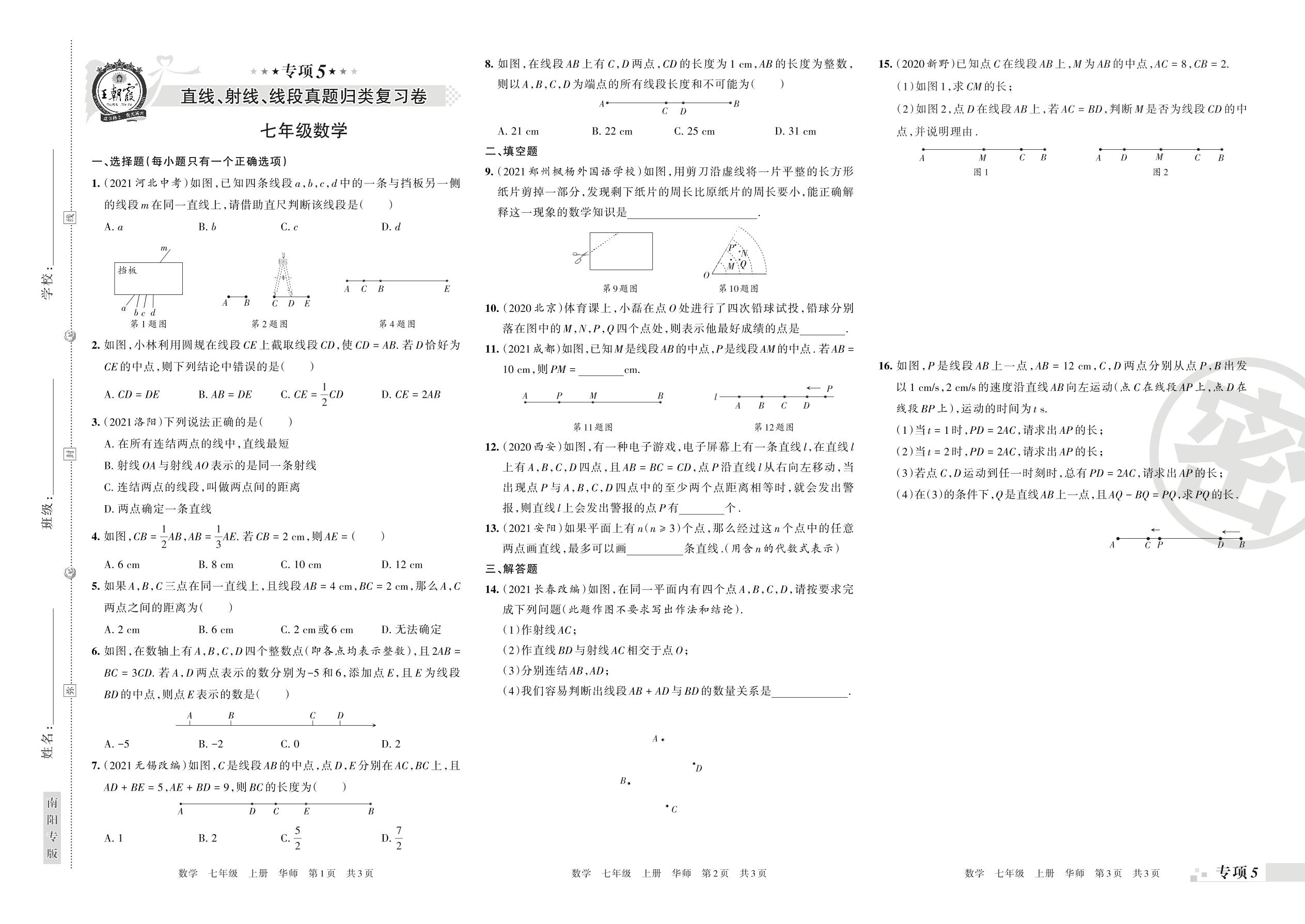 王朝霞期末专项卷——直线、射线、线段真题归类复习卷七年级上册数学(华师版)_R211225092947046【5】