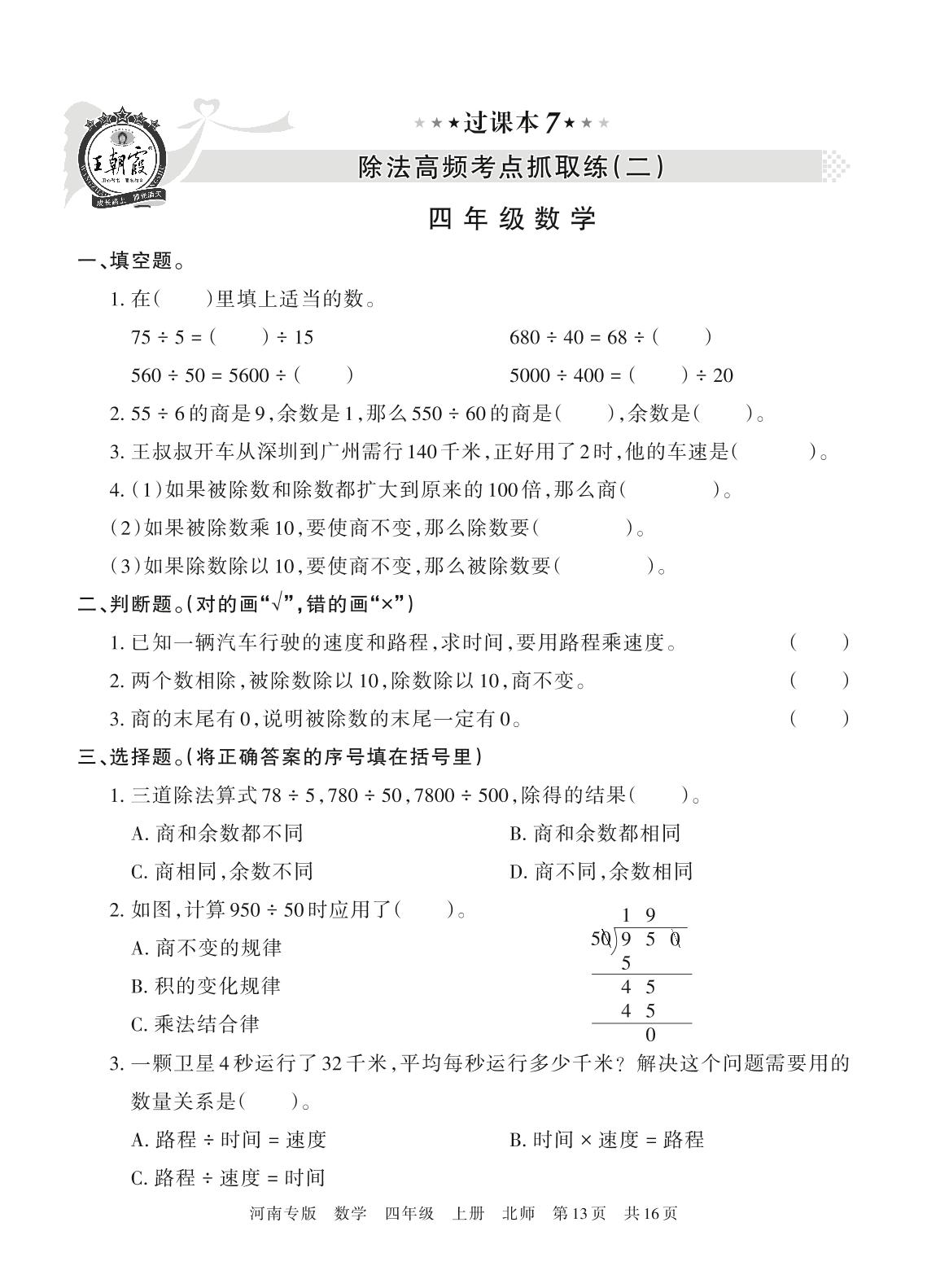 王朝霞期末过课本——除法高频考点抓取练(二)四年级上册数学(北师版)_R211225093136576【7】