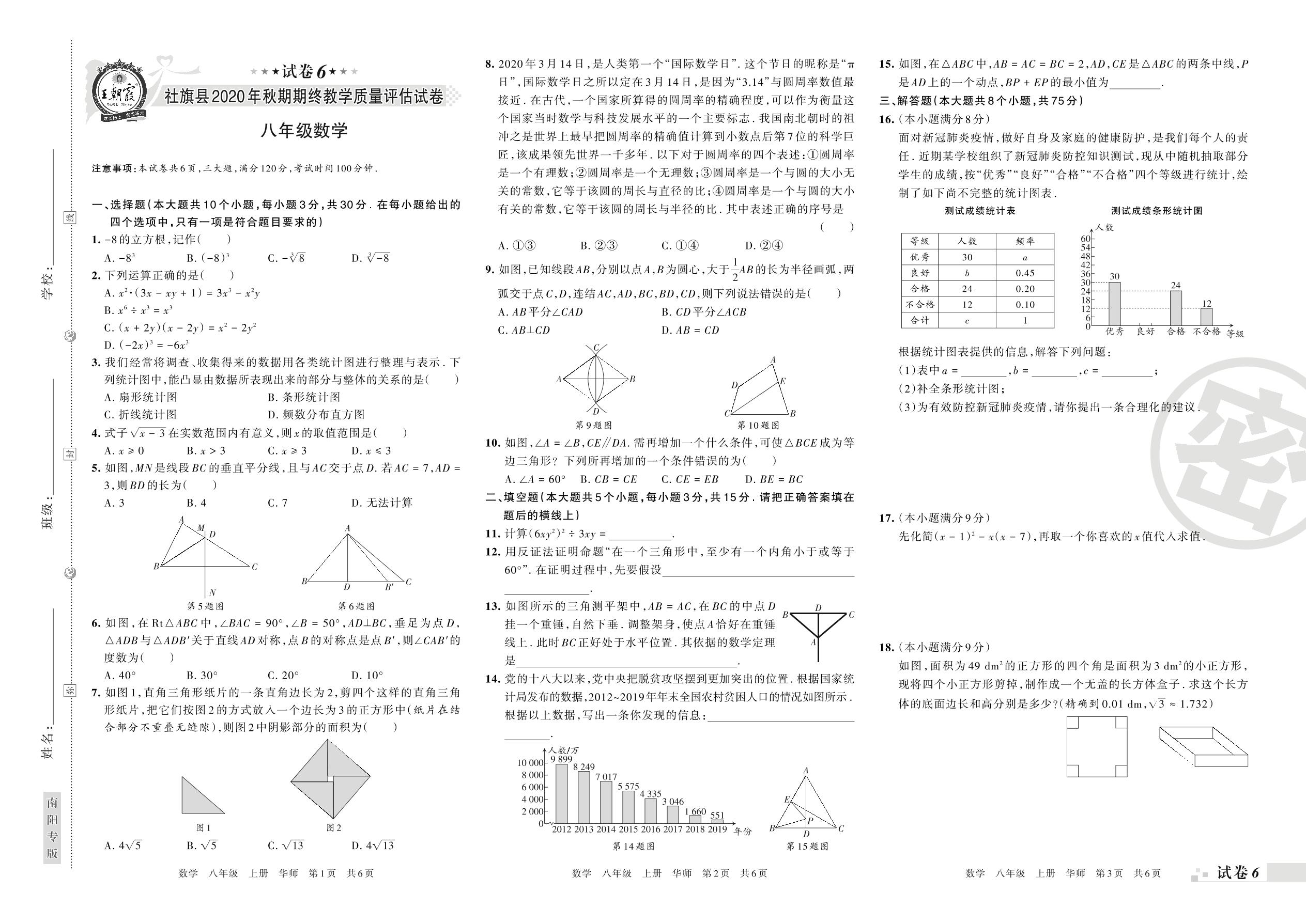 社旗县2020年秋期期终教学质量评估试卷八年级数学(华师版)【6】