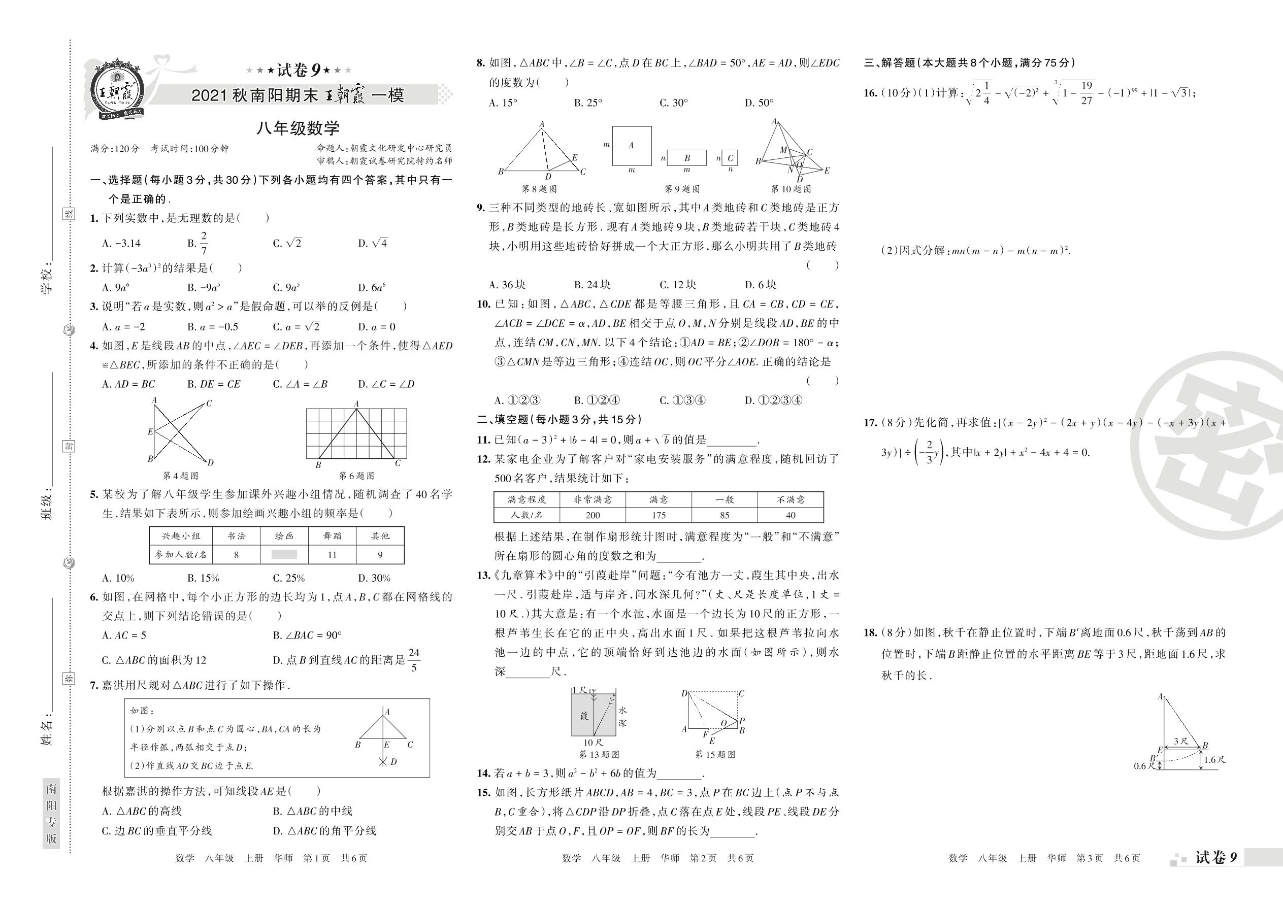 王朝霞期末模拟卷八年级上册数学(华师版)_R211225093453966【9】