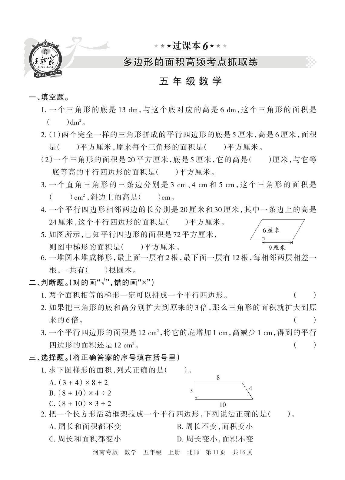 王朝霞期末过课本——多边形的面积高频考点抓取练五年级上册数学(北师版)_R211225093509871【6】