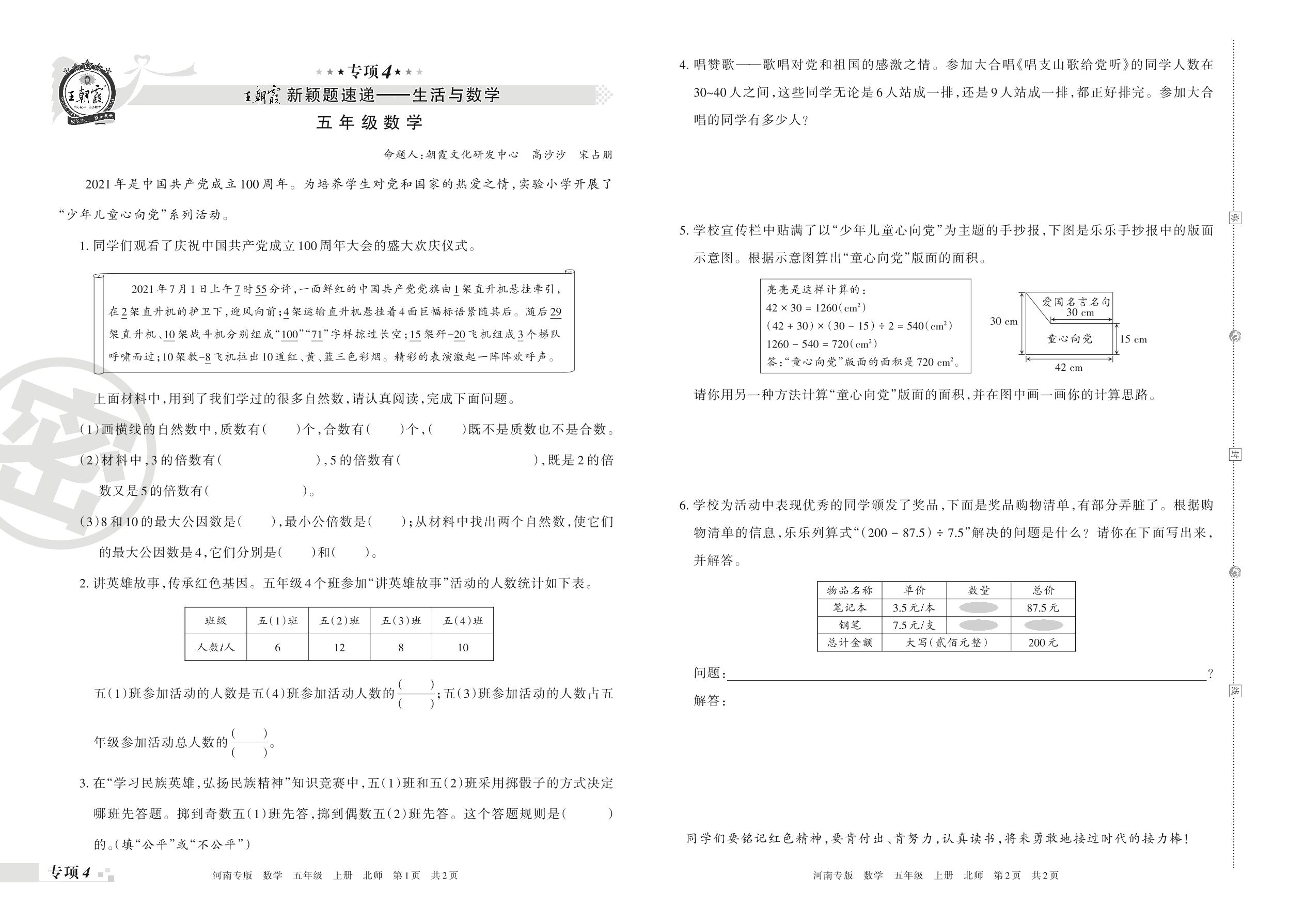王朝霞期末专项卷——新颖题速递:生活与数学五年级上册数学(北师版)_R211225093510543【4】