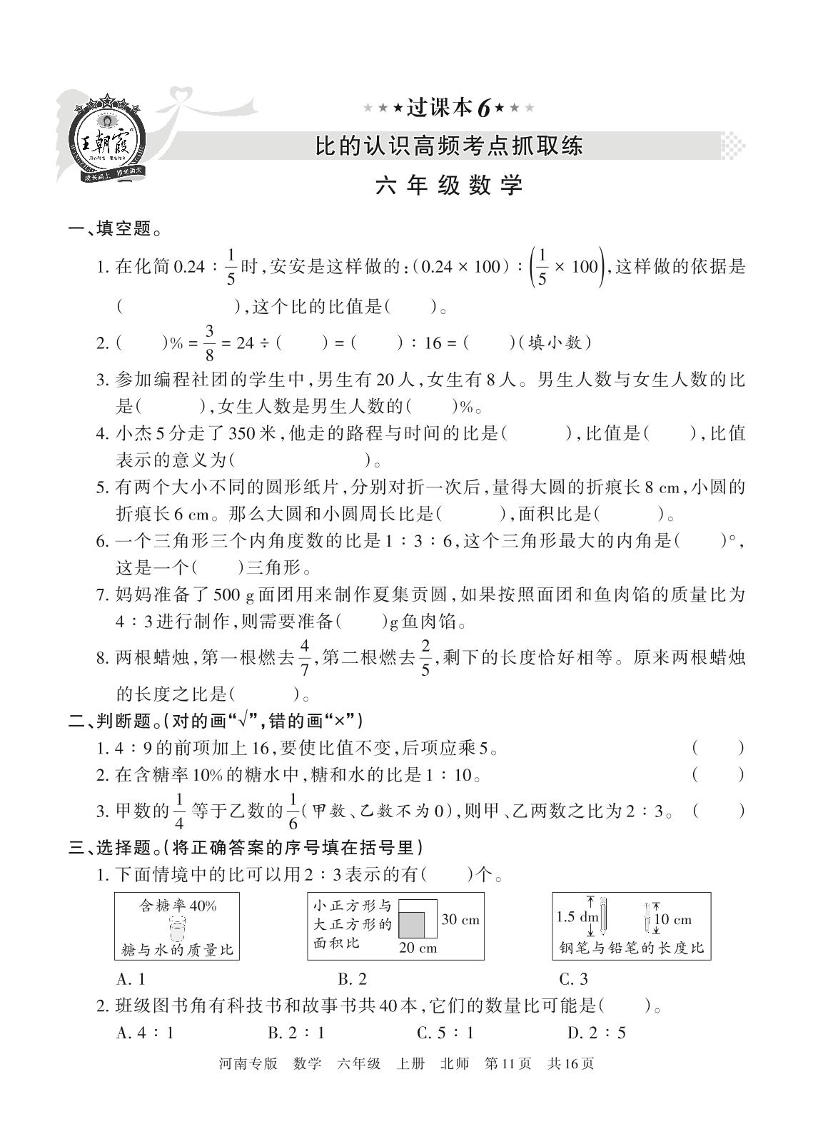 王朝霞期末过课本——比的认识高频考点抓取练六年级上册数学(北师版)_R211225093848427【6】