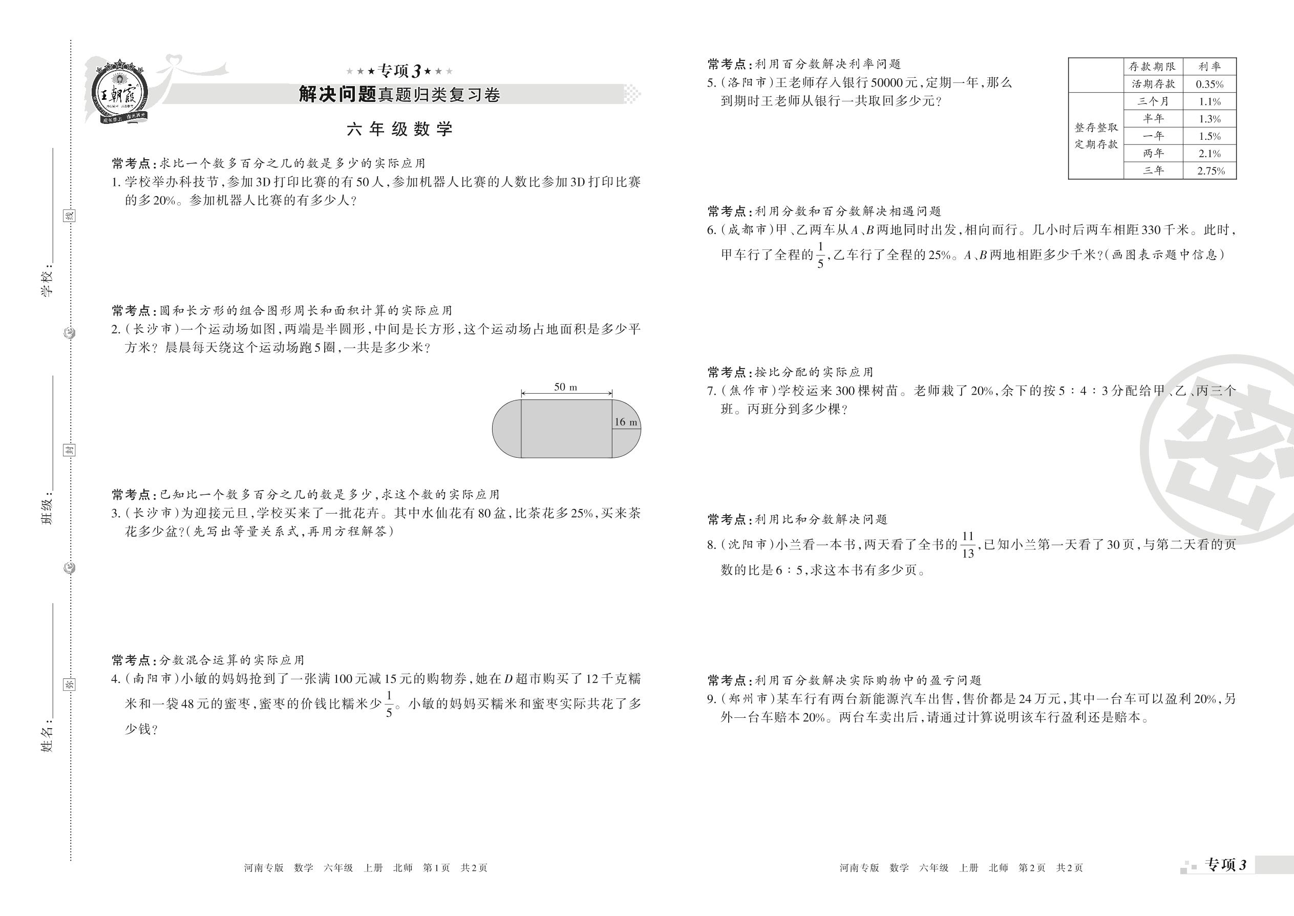 王朝霞期末专项卷——解决问题真题归类复习卷六年级上册数学(北师版)_R211225093849799【3】