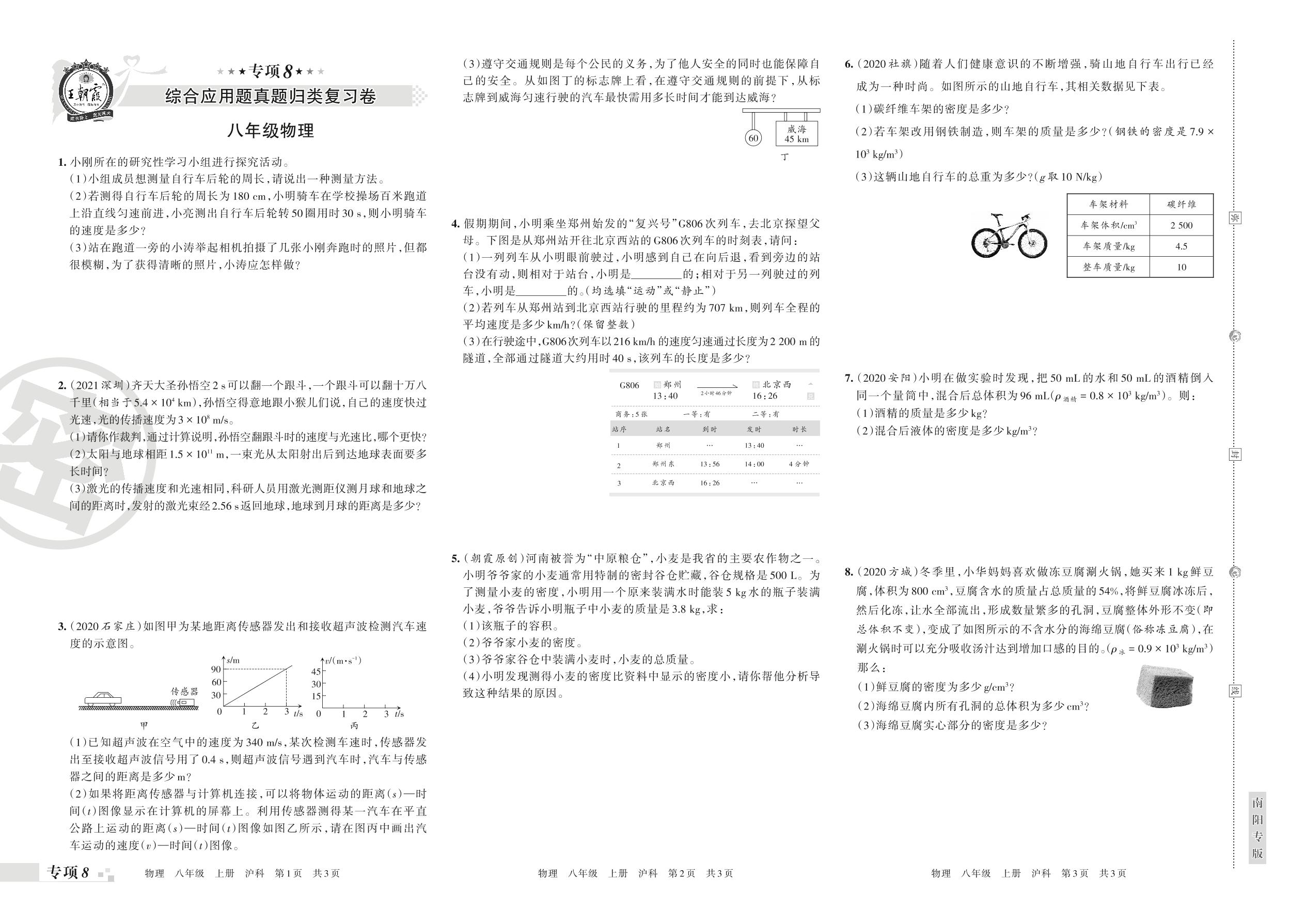 王朝霞期末专项卷——综合应用题真题归类复习卷八年级上册物理(沪科版)_R211225093918190【8】