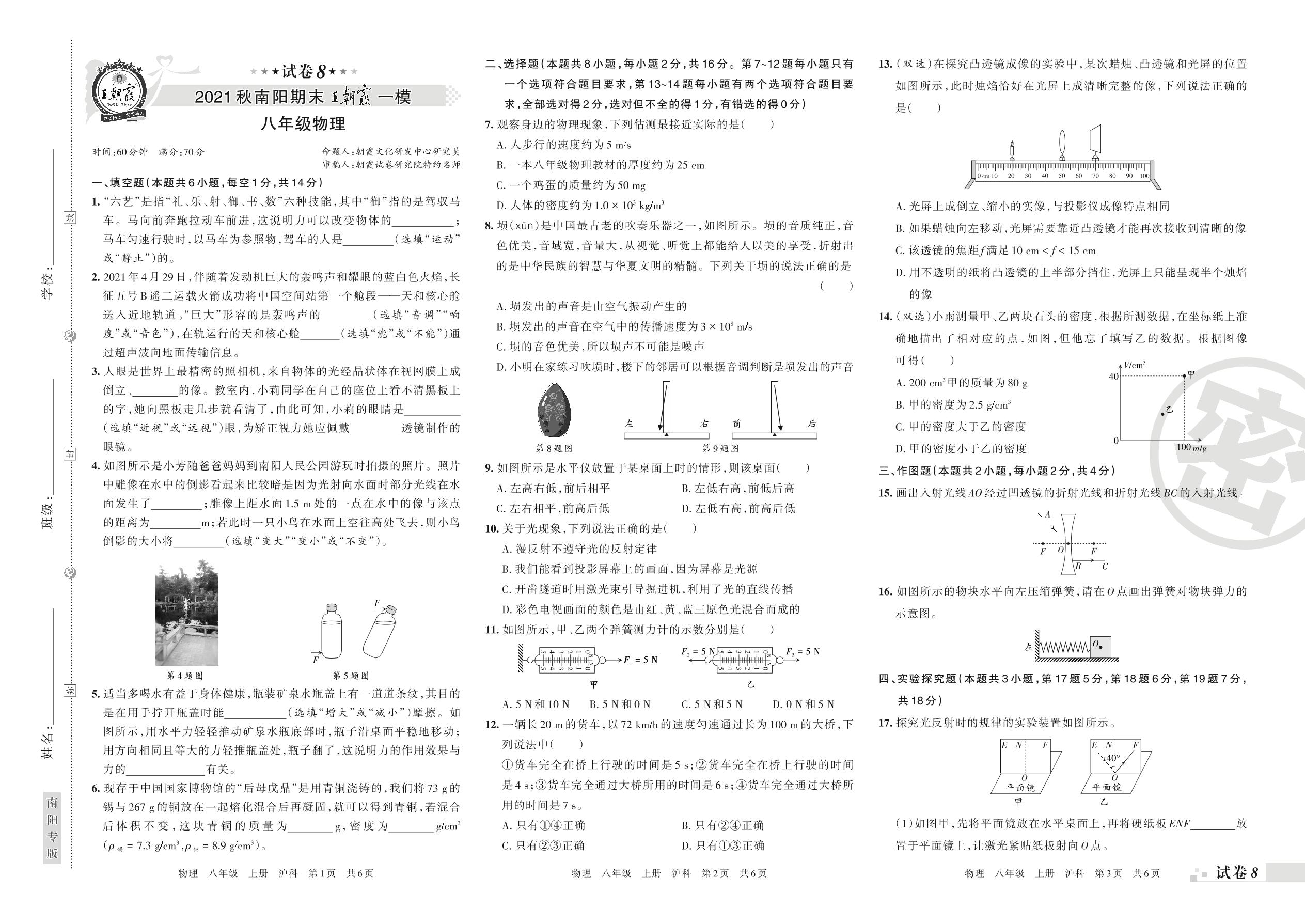 八年级物理沪科版全一册期末卷