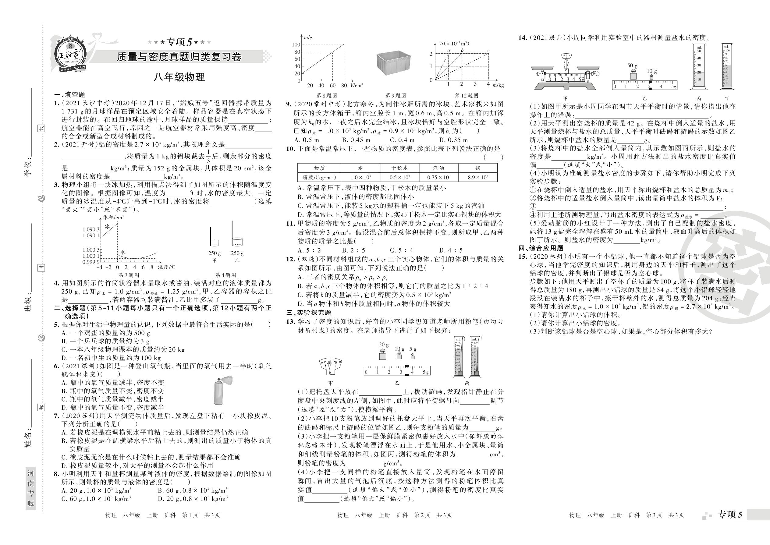 王朝霞期末专项卷——质量与密度真题归类复习卷八年级上册物理(沪科版)_R211225095254980【5】
