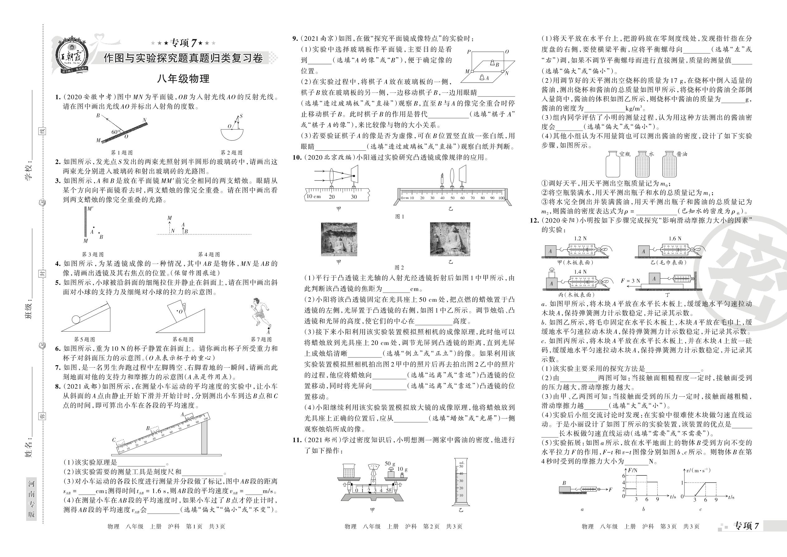 王朝霞期末专项卷——作图与实验探究题真题归类复习卷八年级上册物理(沪科版)_R211225095254143【7】