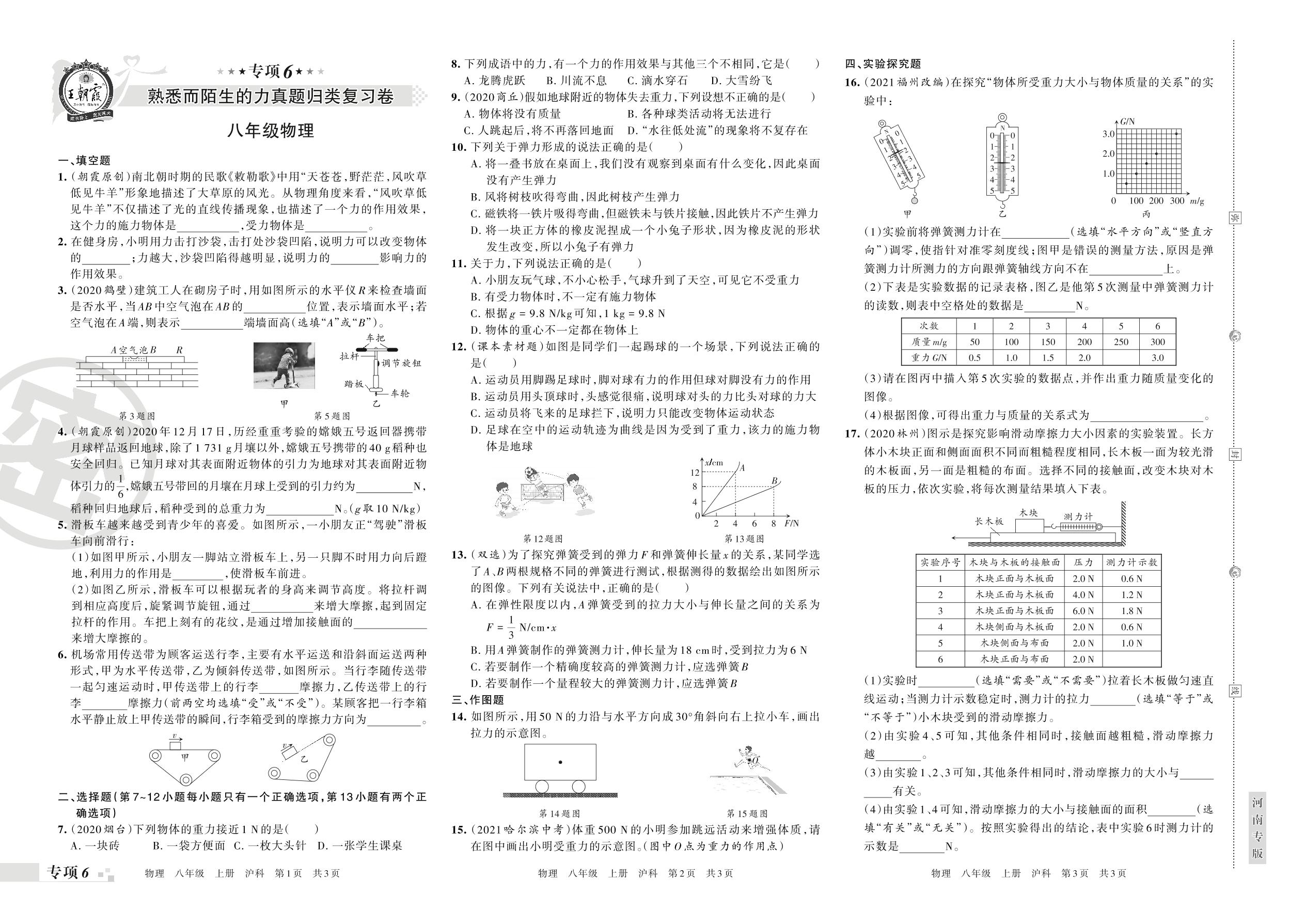 王朝霞期末专项卷——熟悉而陌生的力真题归类复习卷八年级上册物理(沪科版)_R211225095254789【6】