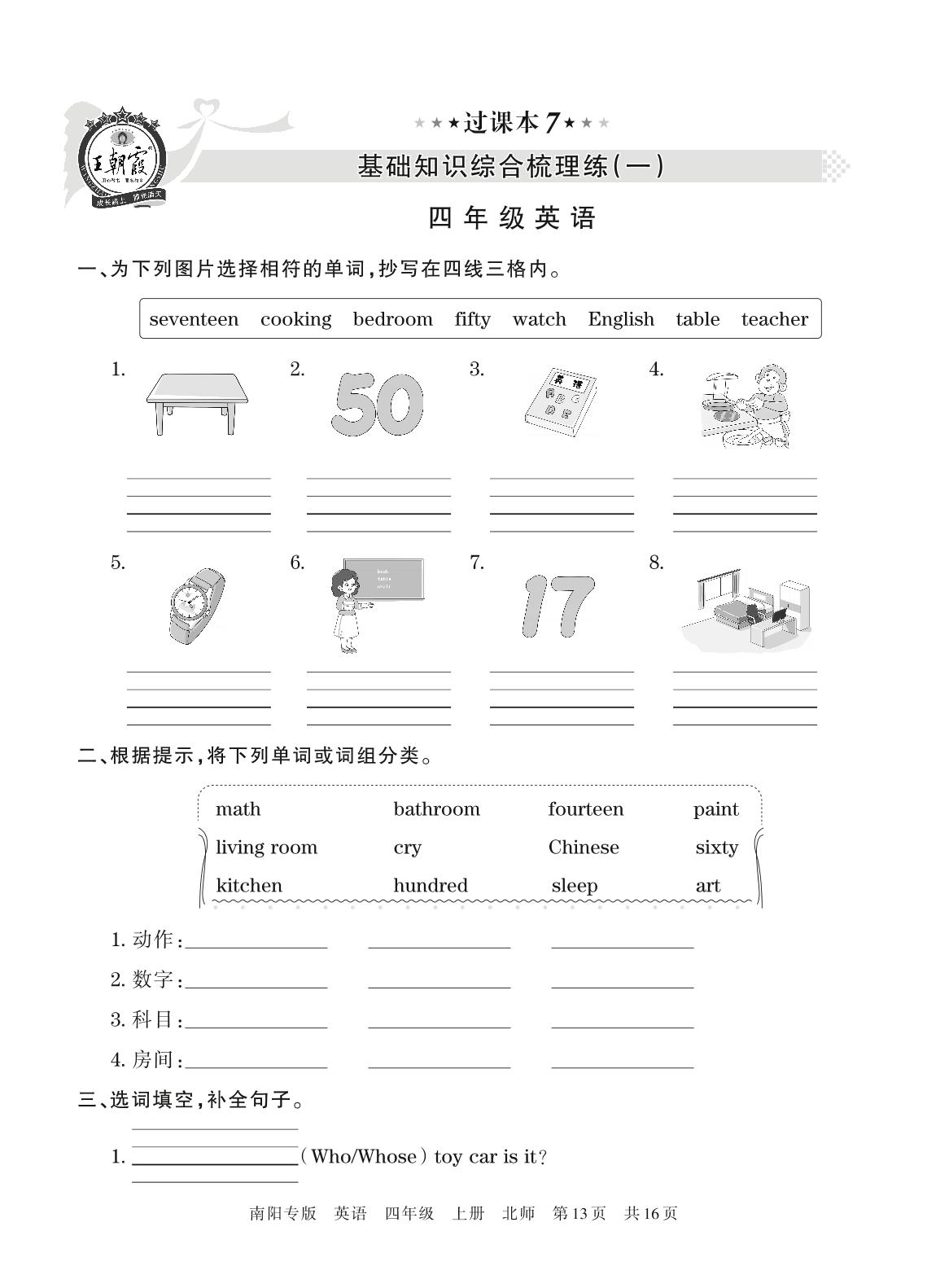 王朝霞期末过课本——基础知识综合梳理练(一)四年级上册英语(北师版)【7】