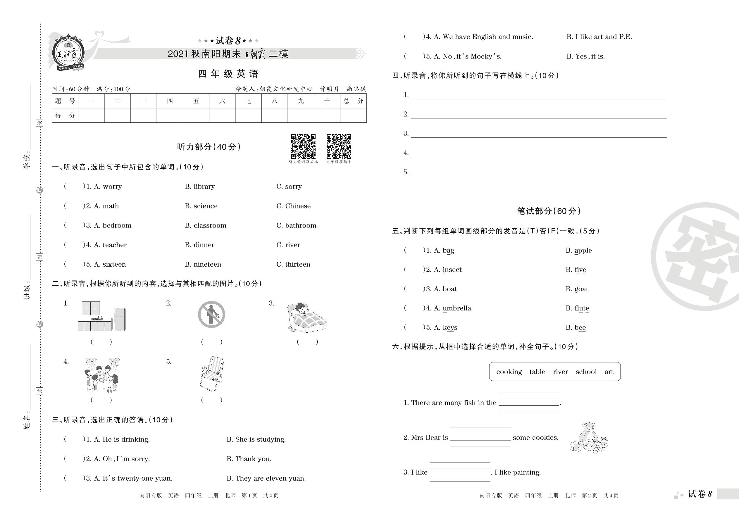 王朝霞期末模拟卷四年级上册英语(北师版)【8】