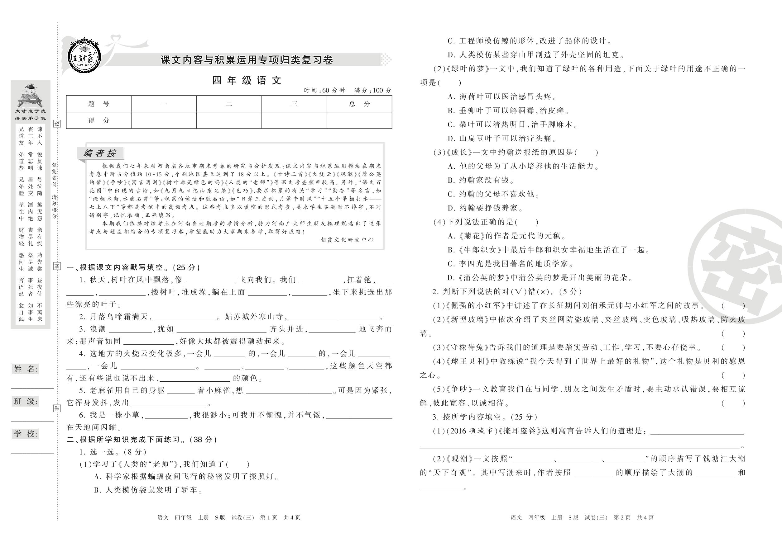 王朝霞期末专项卷四年级上册语文(S版)_R210801220235【3】