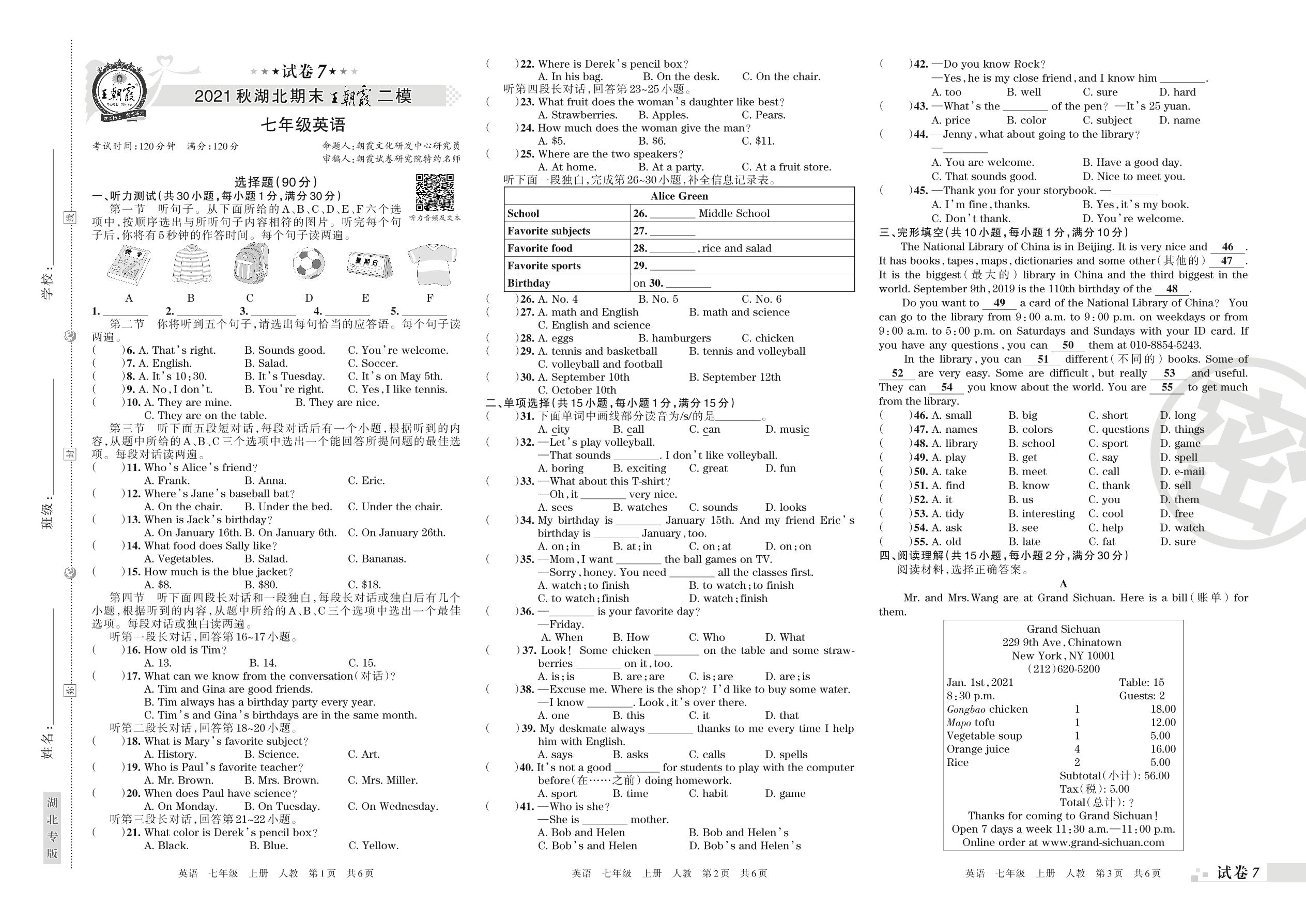 王朝霞期末模拟卷七年级上册英语(人教版)_R211225102422769【7】