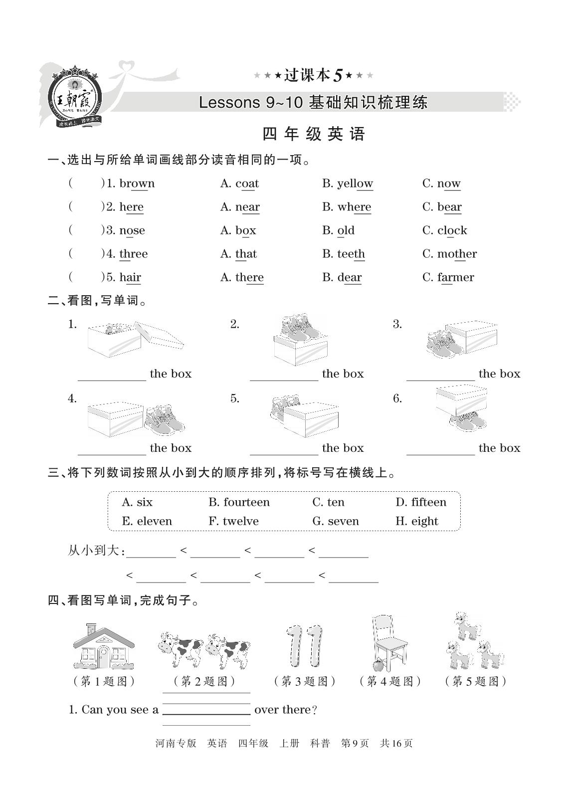 王朝霞期末过课本——Lessons 9~10 基础知识梳理练四年级上册英语(科普版)【5】