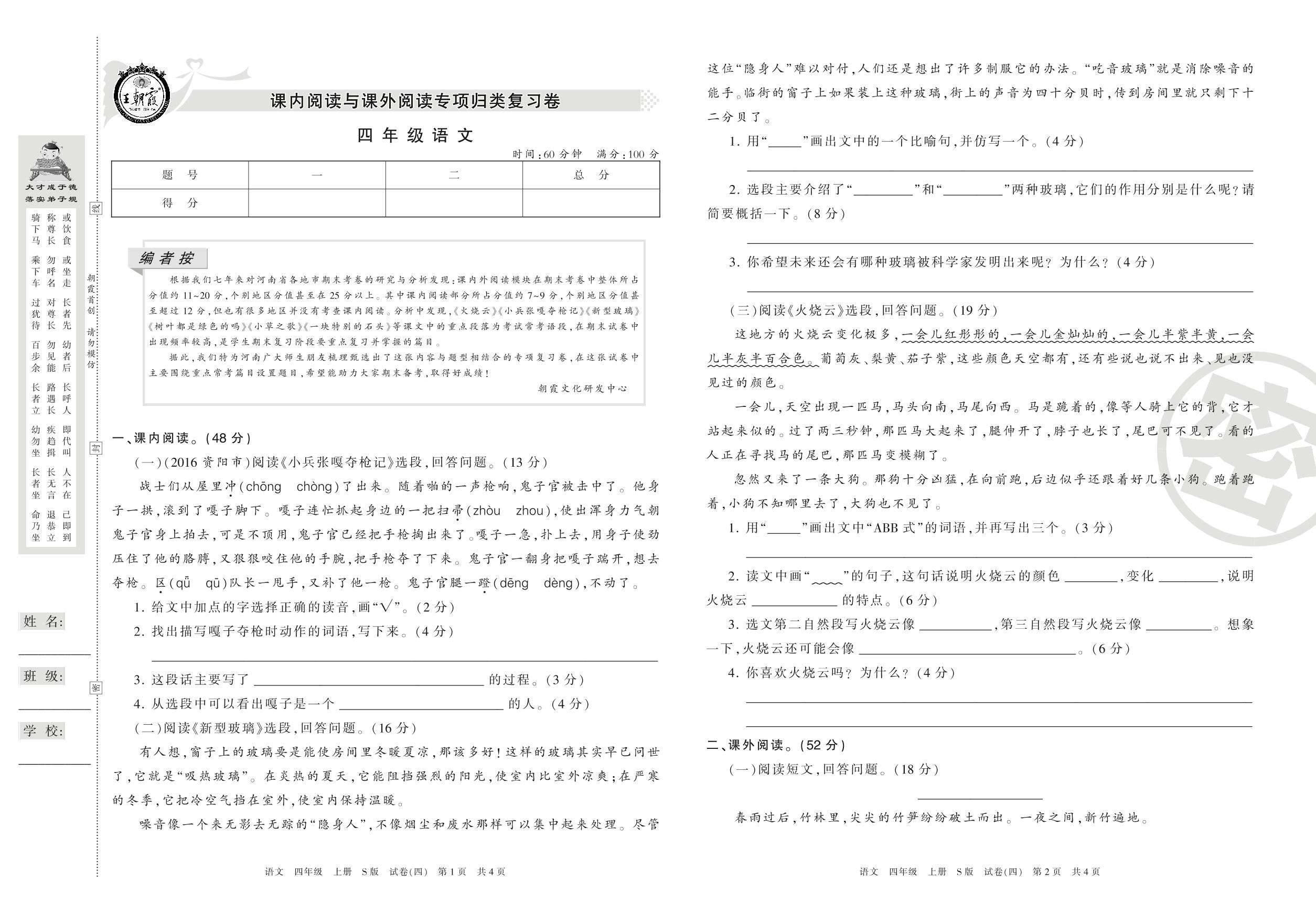 王朝霞期末专项卷四年级上册语文(S版)_R210801220241【4】