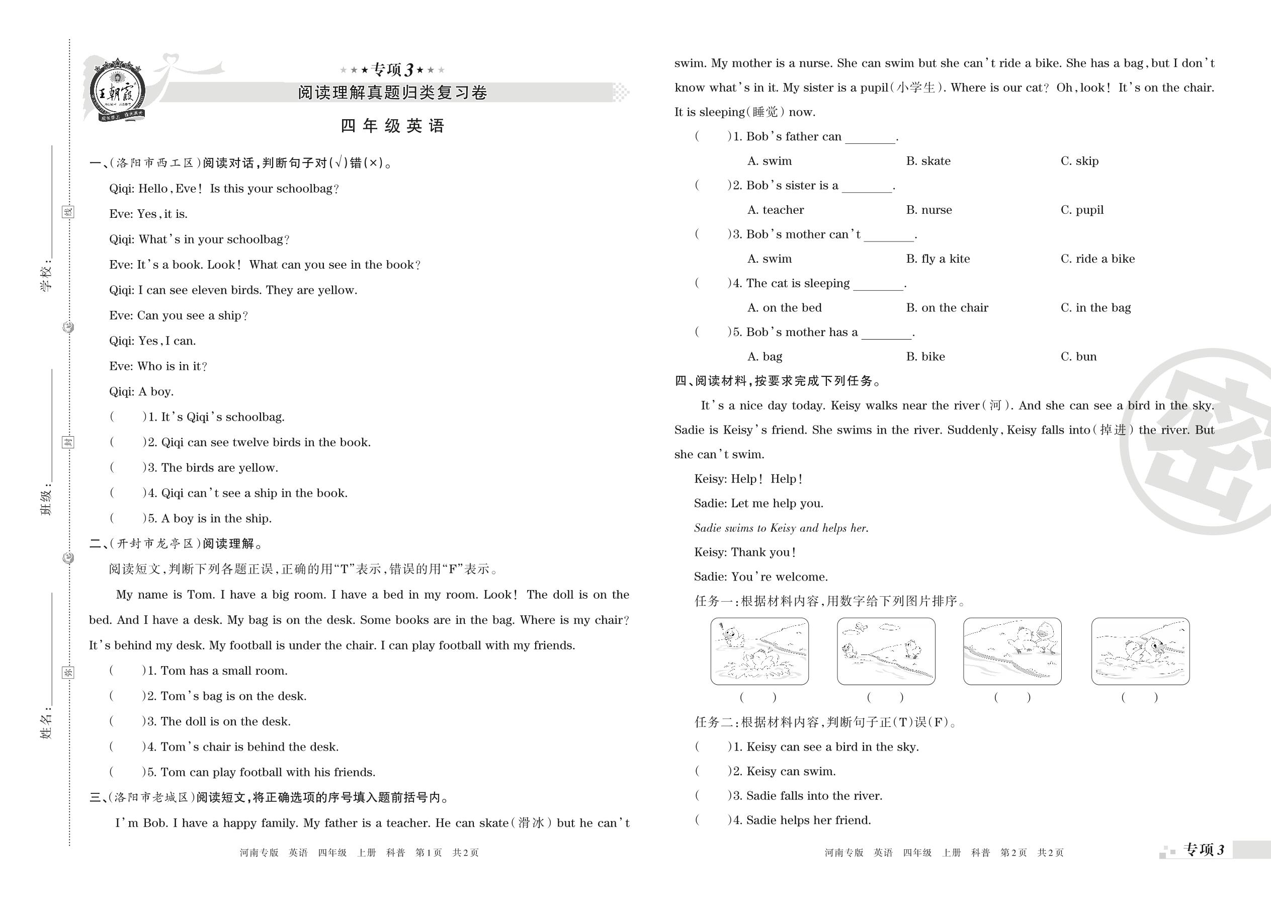 王朝霞期末专项卷——阅读理解真题归类复习卷四年级上册英语(科普版)_R211225102532242【3】