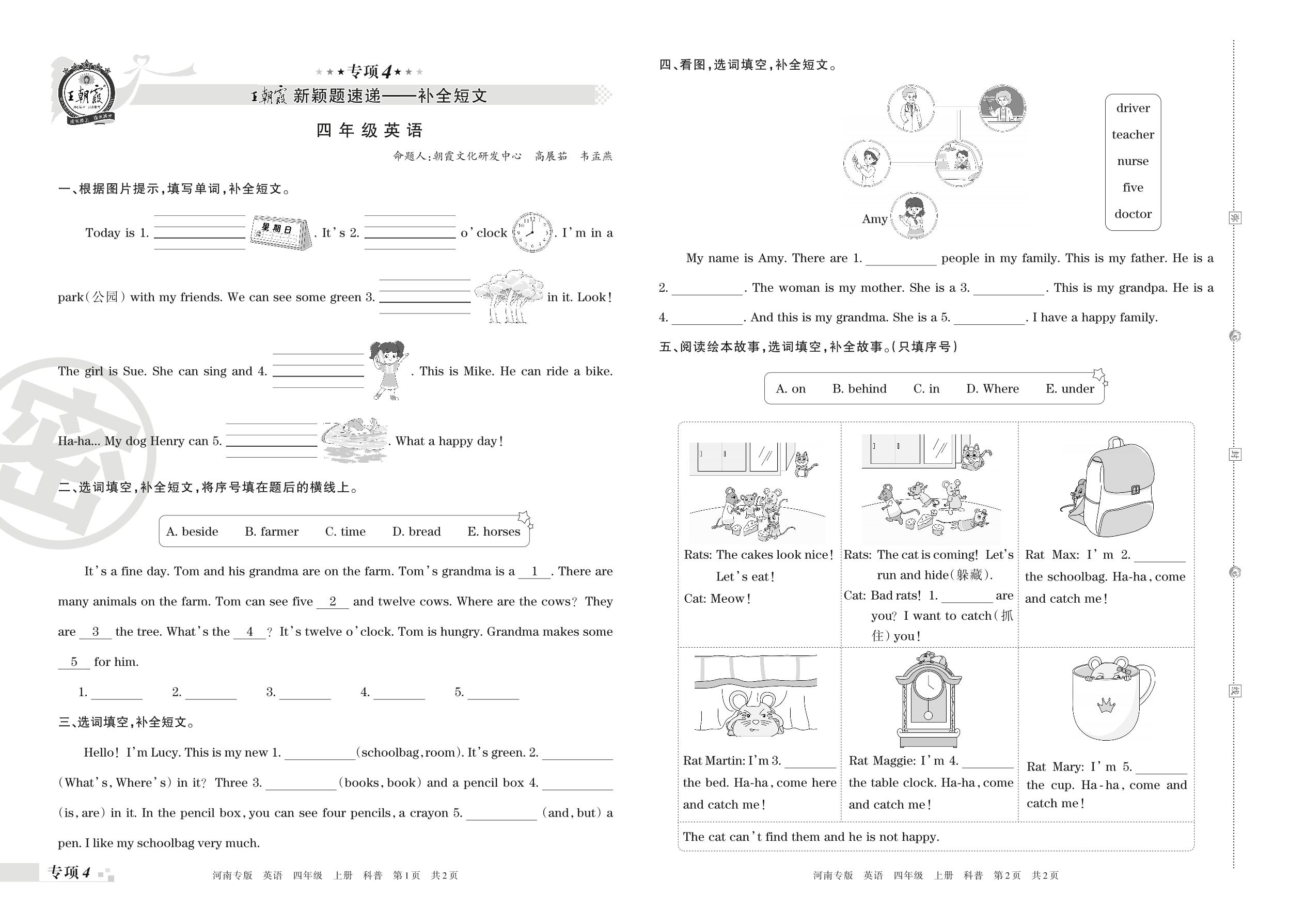 王朝霞期末专项卷——新颖题速递:补全短文四年级上册英语(科普版)_R211225102532517【4】