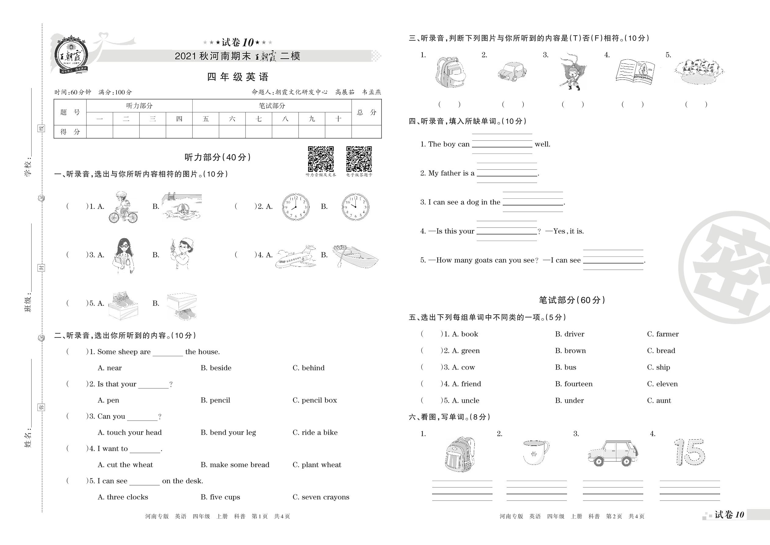 王朝霞期末模拟卷四年级上册英语(科普版)_R211225102533168【10】