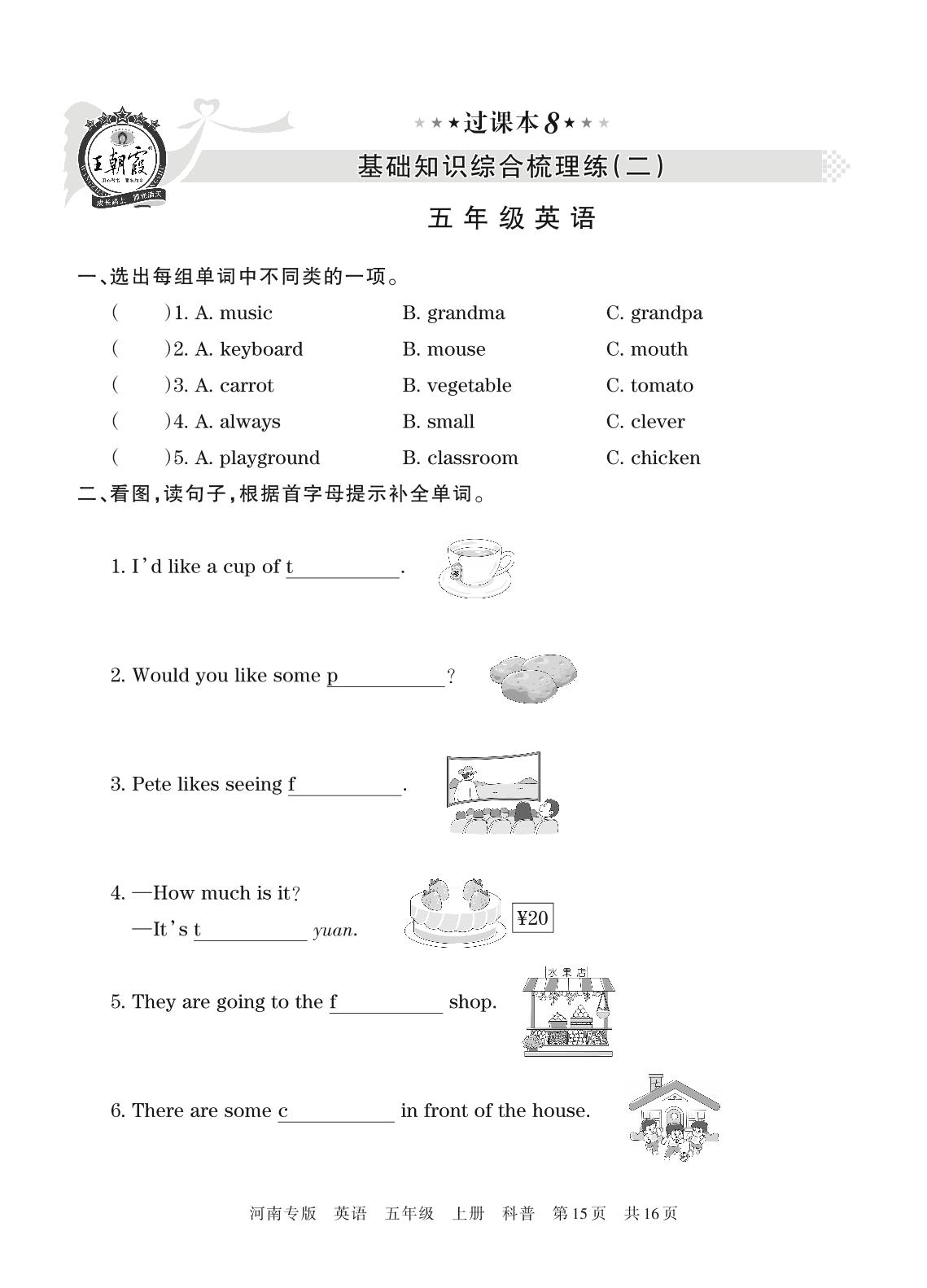 王朝霞期末过课本——基础知识综合梳理练(二)五年级上册英语(科普版)_R211225102927697【8】