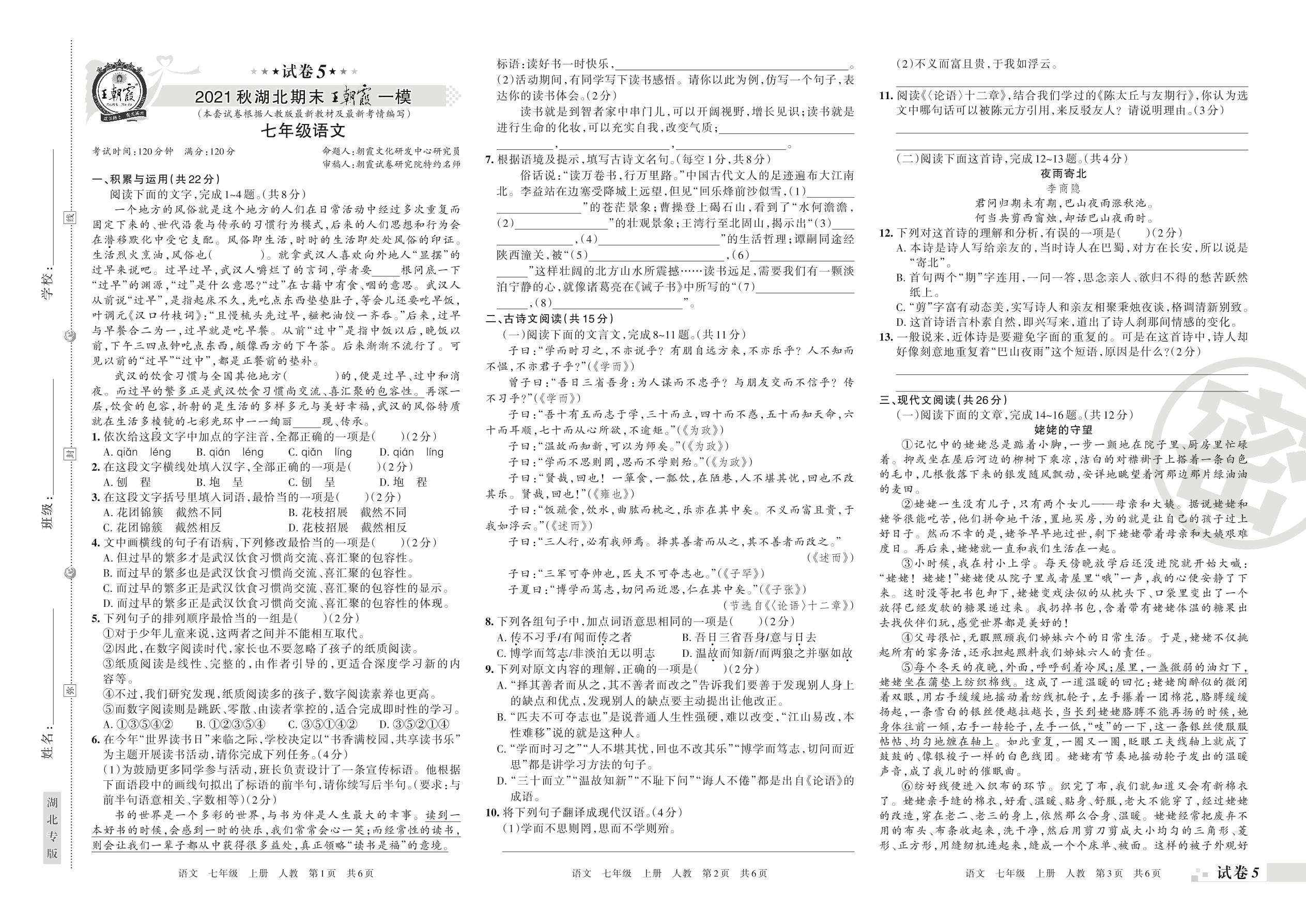 王朝霞期末模拟卷七年级上册语文(人教版)_R211225103031369【5】