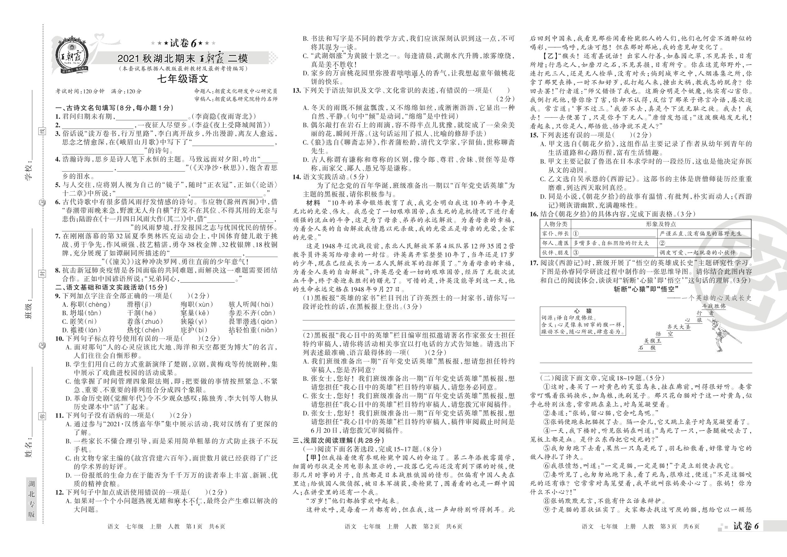 王朝霞期末模拟卷七年级上册语文(人教版)_R211225103031466【6】