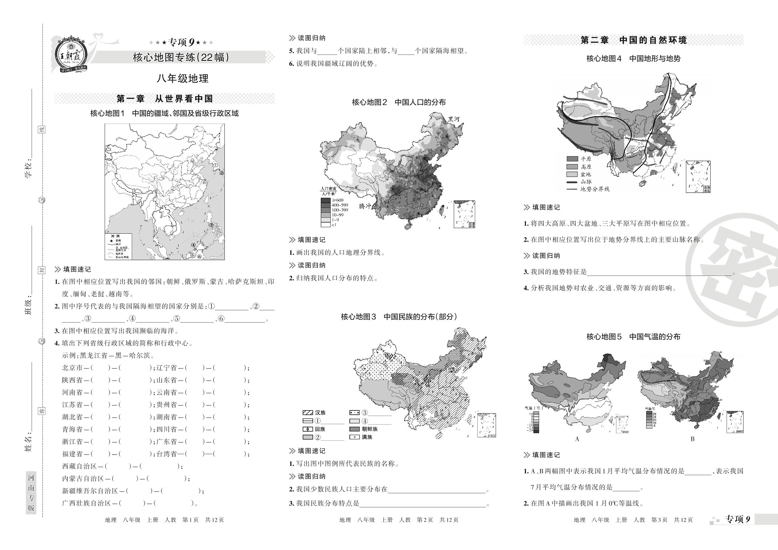 王朝霞期末专项卷——核心地图专练(22幅)八年级上册地理(人教版)【9】
