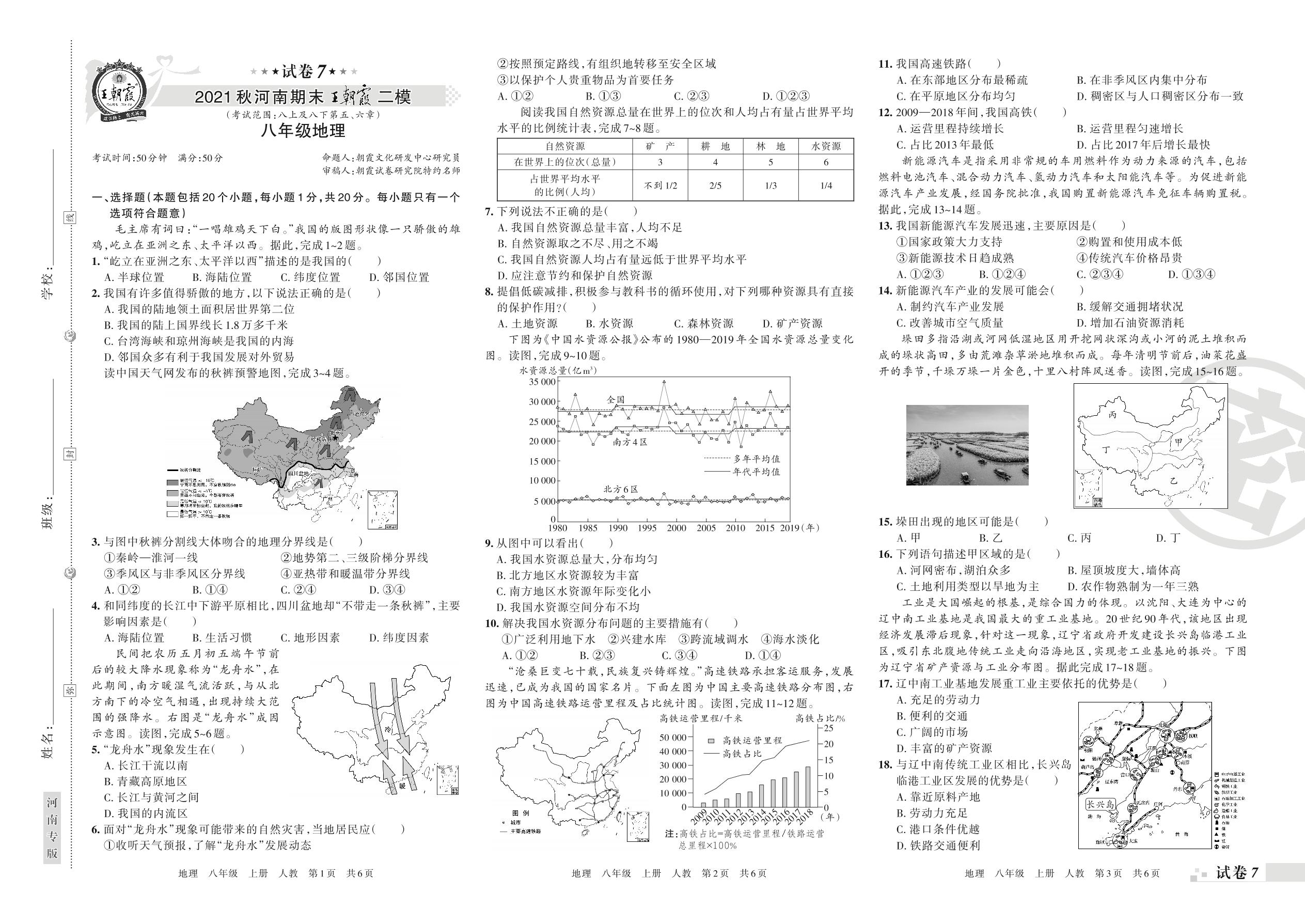 王朝霞期末模拟卷八年级上册地理(人教版)【7】