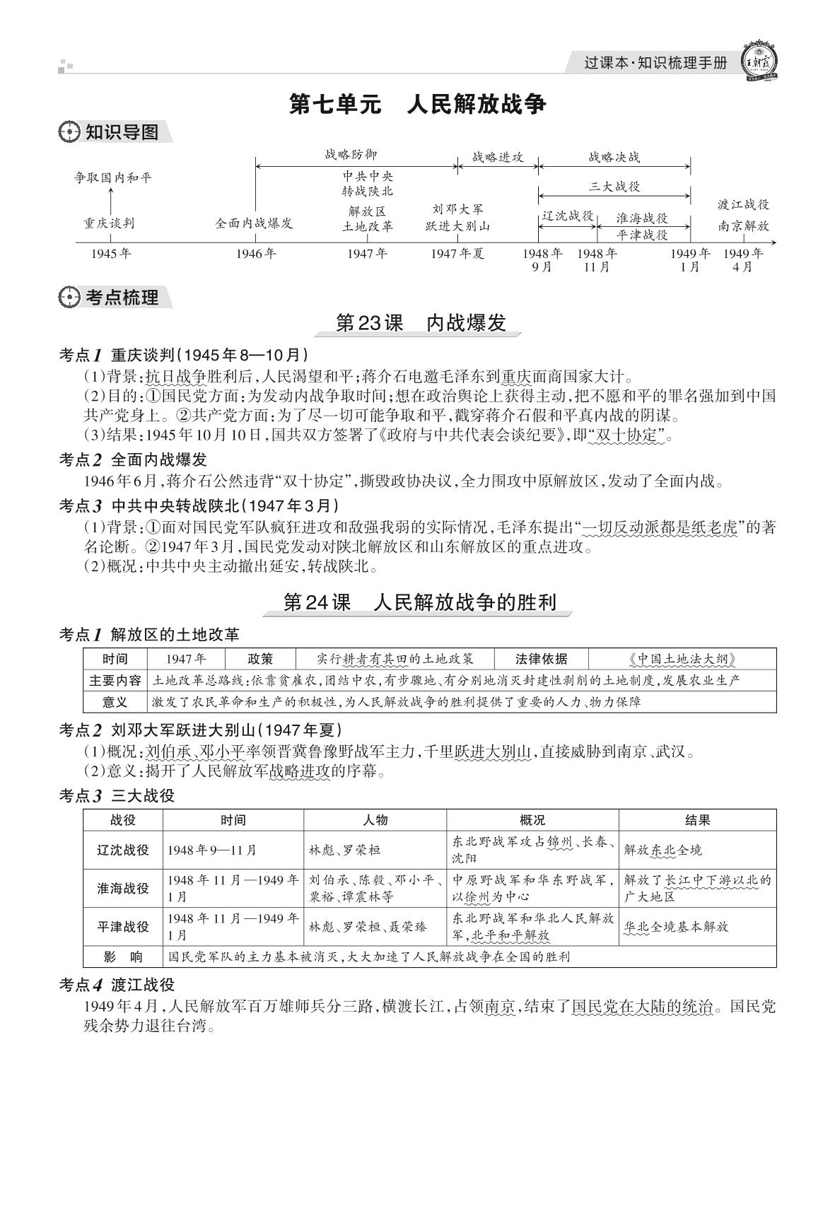 王朝霞期末知识梳理——第七单元 人民解放战争八年级上册历史(人教版)_R211225105057983【7】