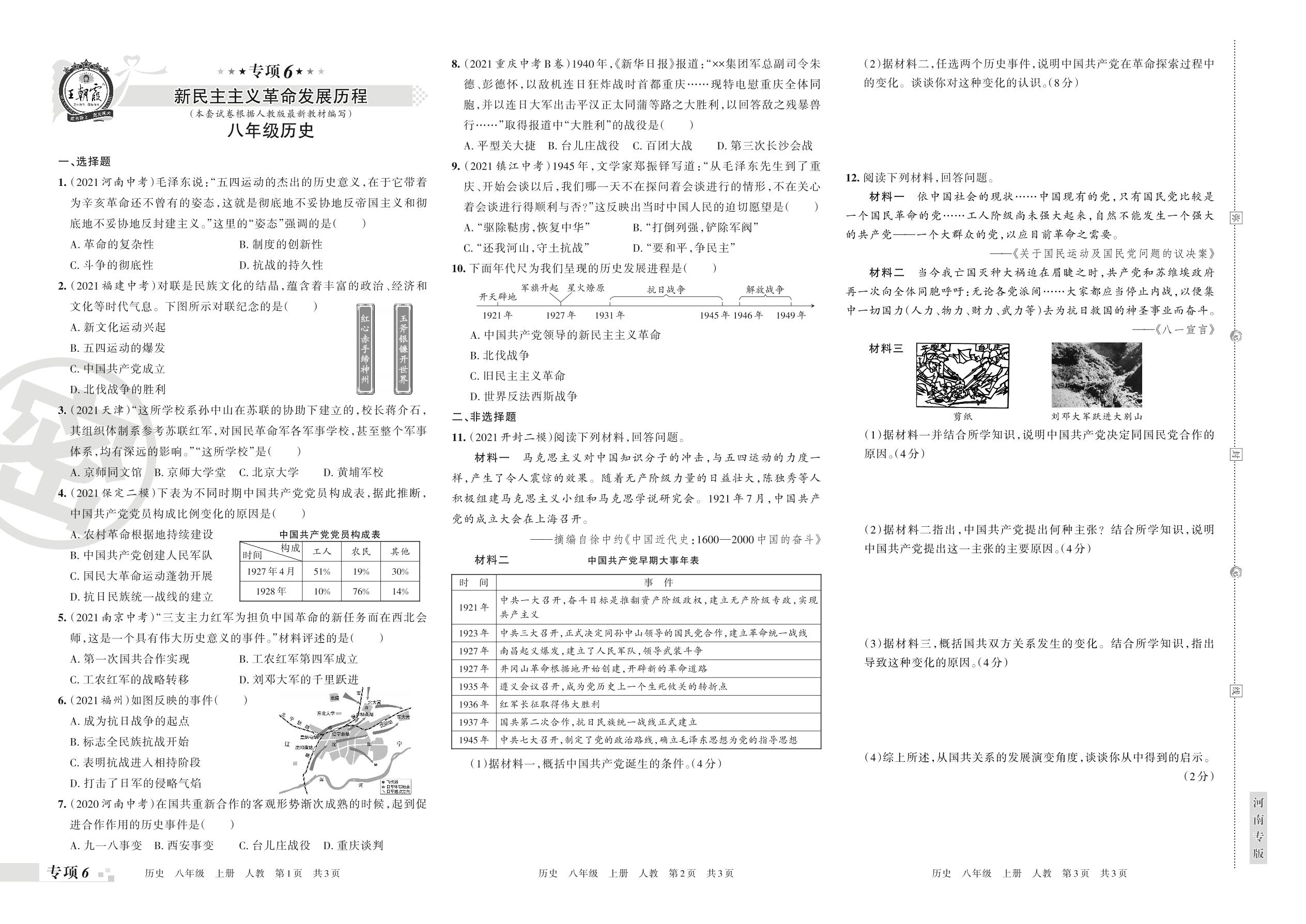 王朝霞期末专项卷——新民主主义革命发展历程八年级上册历史(人教版)_R211225105057020【6】