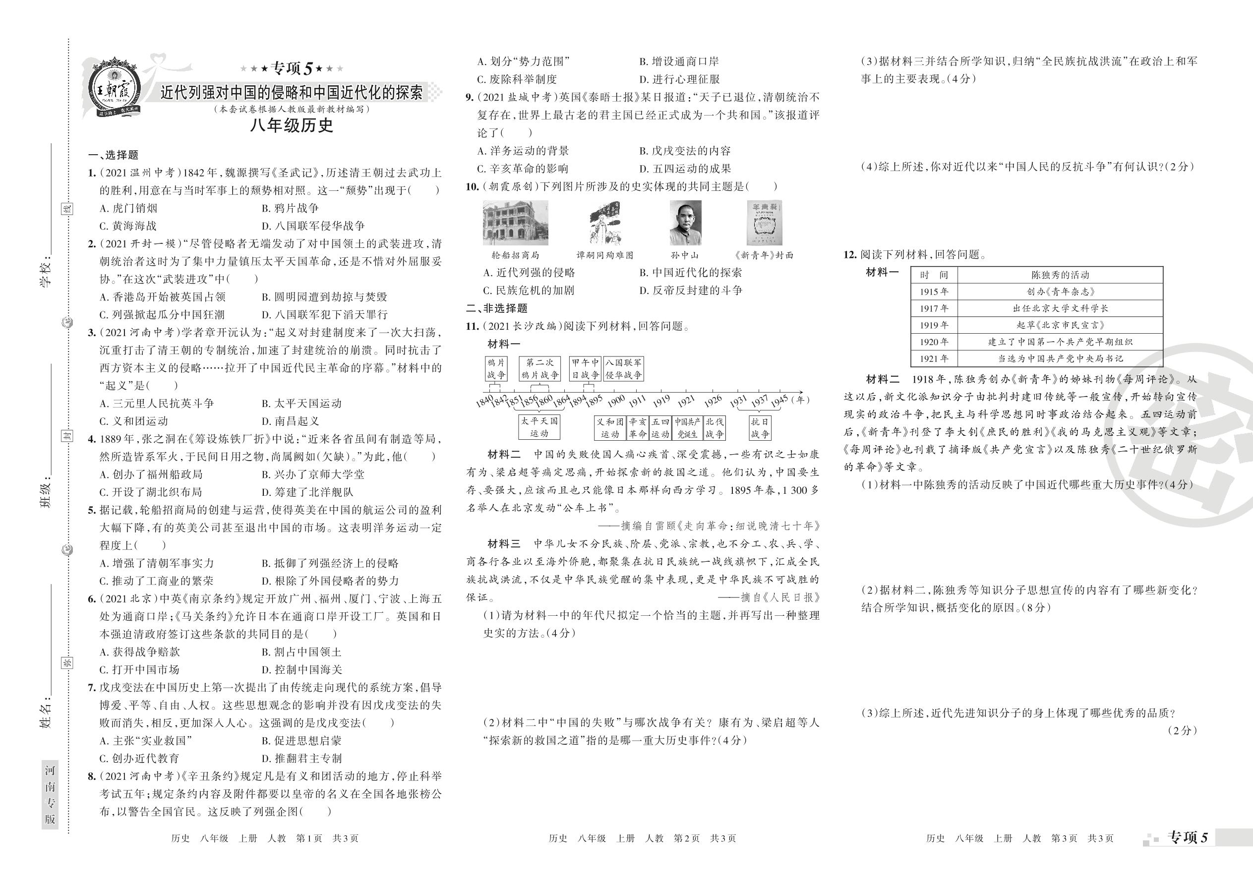 王朝霞期末专项卷——近代列强对中国的侵略和中国近代化的探索八年级上册历史(人教版)_R211225105057486【5】
