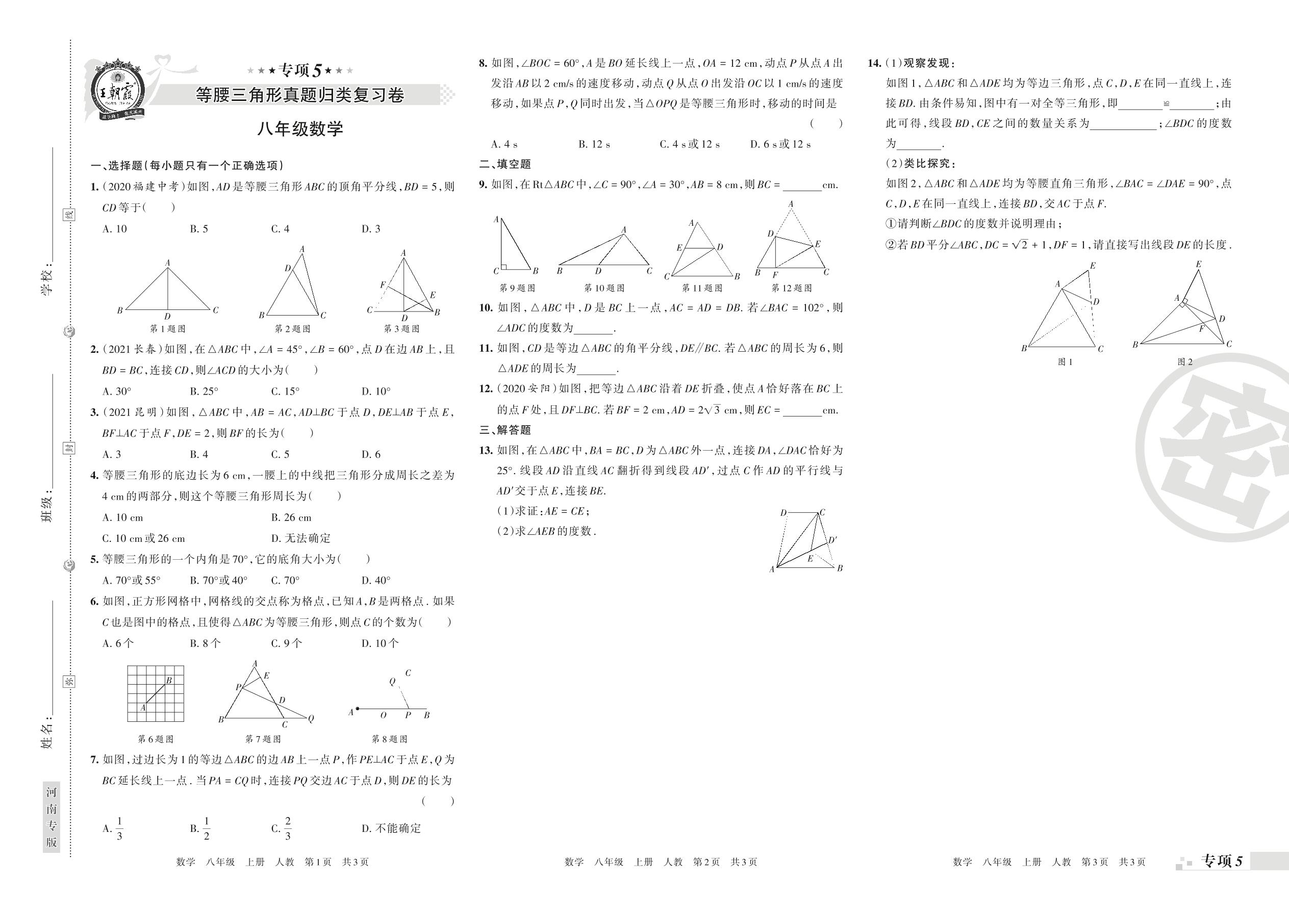 王朝霞期末专项卷——等腰三角形真题归类复习卷八年级上册数学(人教版)_R211225105740828【5】