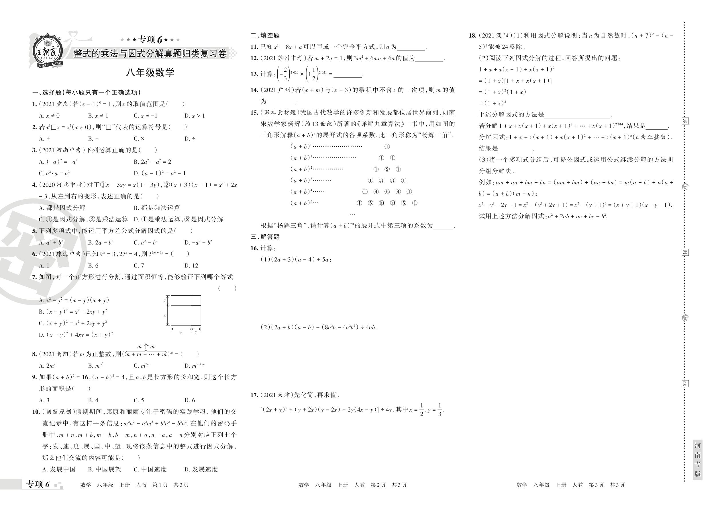 王朝霞期末专项卷——整式的乘法与因式分解真题归类复习卷八年级上册数学(人教版)_R211225105740899【6】