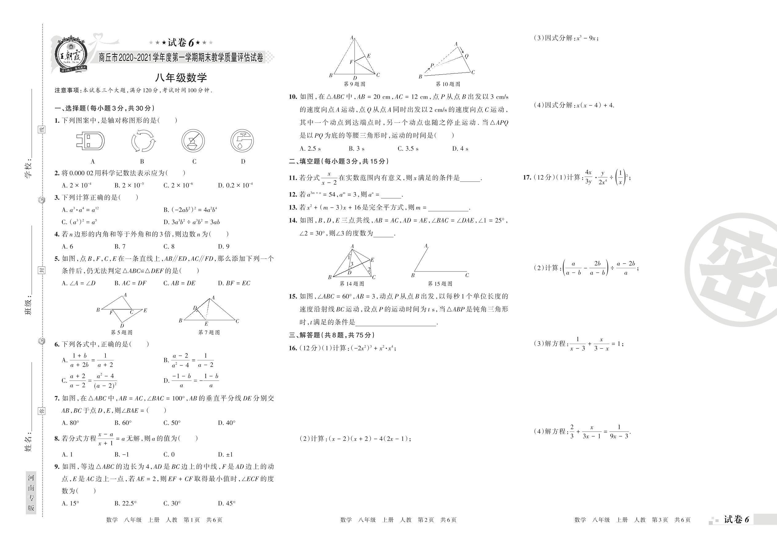 商丘市2020~2021学年度第一学期期末教学质量评估试卷八年级数学(人教版)【6】